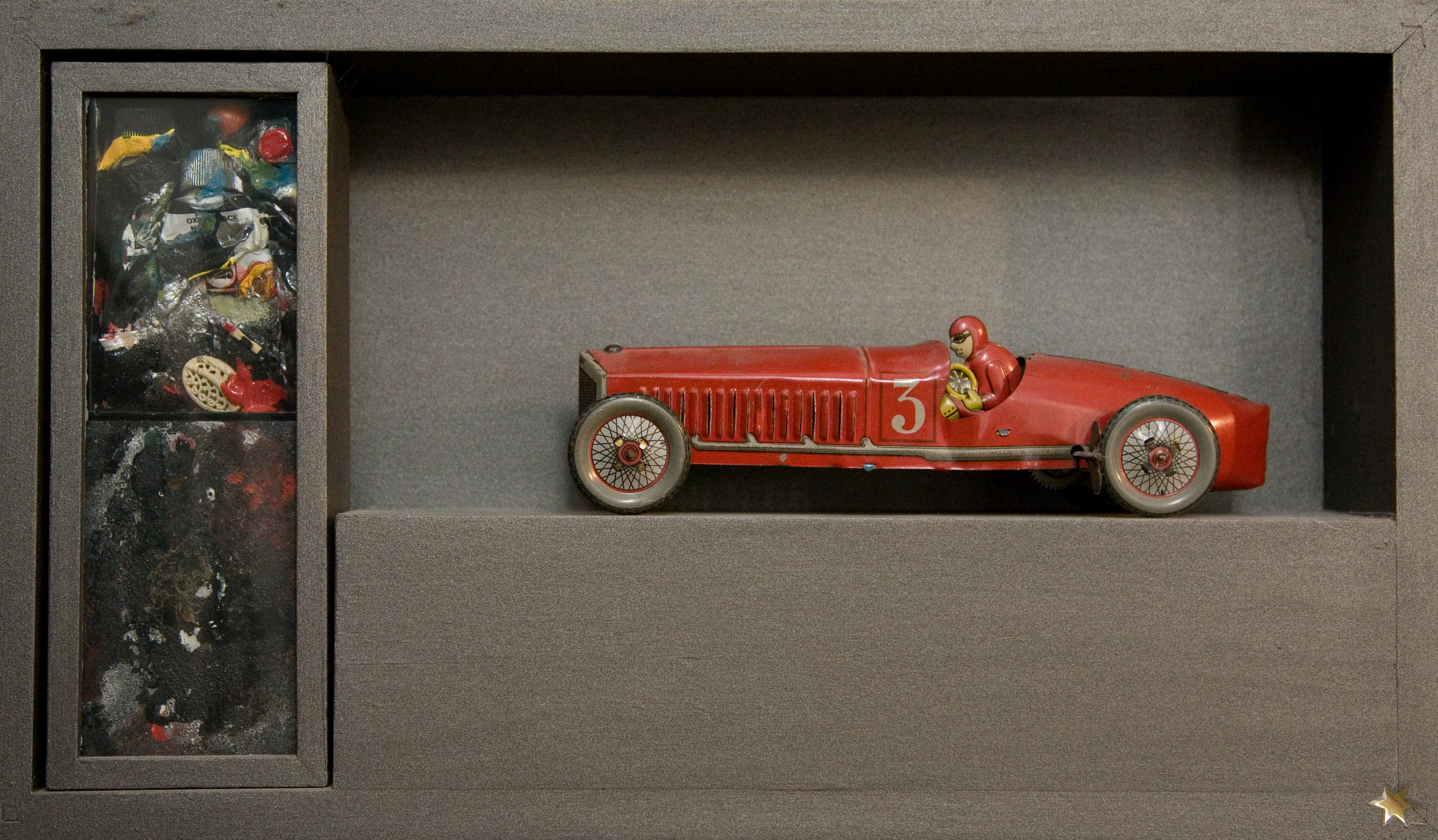 Lucio Riva (classe 1928), decano degli artisti modenesi, vive e lavora a Modena nella sua casa studio di Via del Teatro 1, una specie di Wunderkammer nella quale da sempre ha invitato artisti, collezionisti ed amici per mostrare i propri lavori. Un artista schivo che non ama molto le gallerie e gli spazi privati, la cui esistenza è inestricabilmente intrecciata a quella dei numerosissimi oggetti che letteralmente “popolano” la sua abitazione e che assembla creando opere in cui si sedimentano ricordi personali e reminiscenze culturali che aprono a profonde riflessioni filosofiche. Si tratta di scatole, ma non solo, anche di veri e propri teatrini che fungono da archivi e memorie di vita vissuta: raffinate combinazioni di oggetti, i più svariati e curiosi, che lontani dal loro abituale valore d'uso, ci parlano di sé per poi divenire qualcosa d'altro, di misterioso, e fonte di sconfinata meraviglia. Cimeli scientifici, oggetti d'antiquariato e di modernariato, vecchie fotografie, mappe geografiche, ma anche tanto altro, convivono insieme secondo una modalità di comporre oggetti eterogenei che richiama l'opera dell'americano Joseph Cornell e risale fino a Duchamp con i suoi contenitori che raccoglievano insieme tracce di idee, immagini e frammenti.