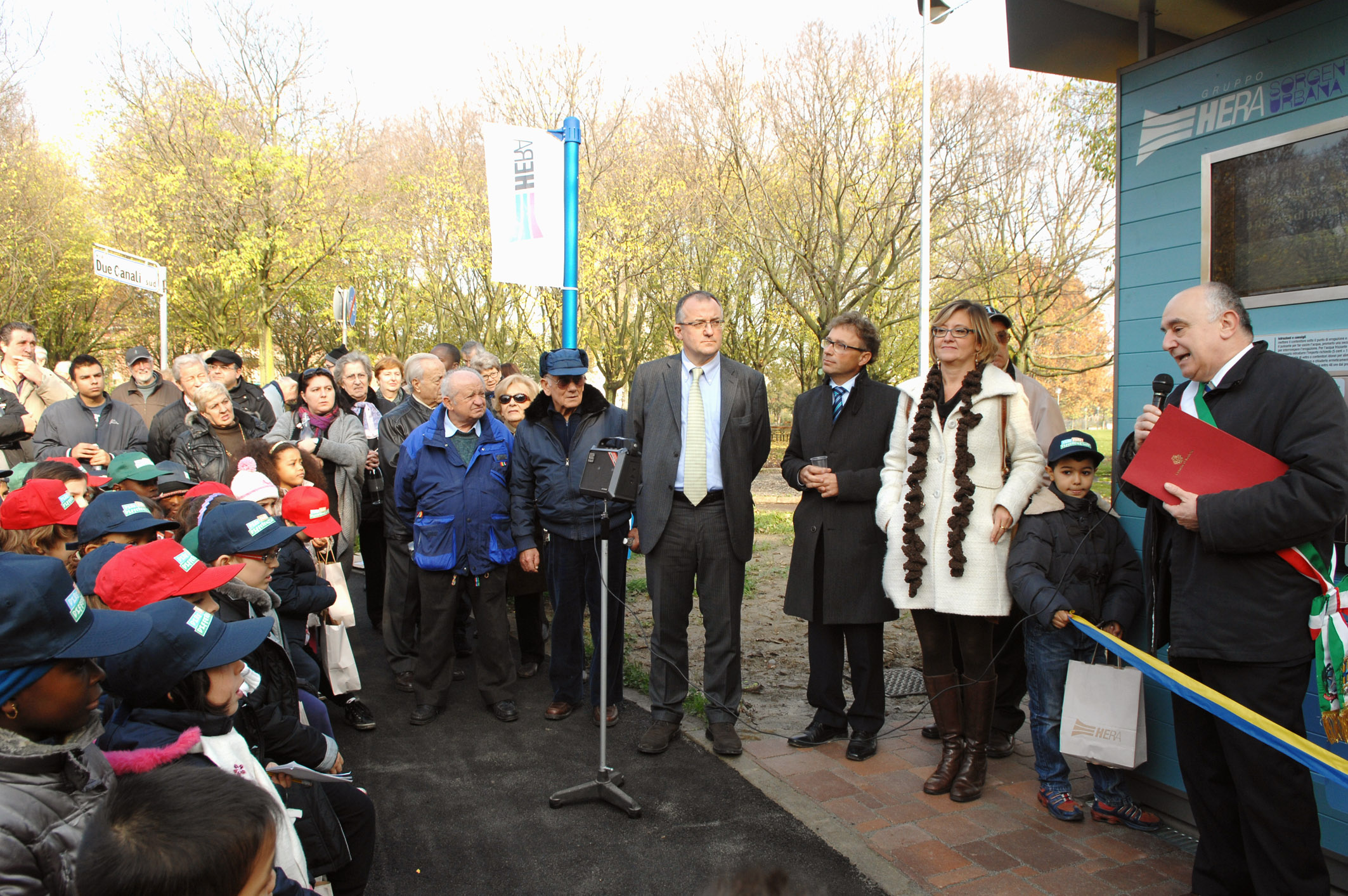 Taglio del nastro oggi, venerdì 23 novembre, per la seconda casa dell'acqua realizzata al Parco XXII Aprile nella Circoscrizione 2 del comune di Modena. Alle cerimonia erano presenti Giorgio Pighi, sindaco di Modena, Simona Arletti, assessore all'Ambiente, Antonio Carpentieri, presidente della Circoscrizione 2, Roberto Gasparetto, direttore Hera SOT Modena e Andrea Montanari, direttore di Adriatica Acque.