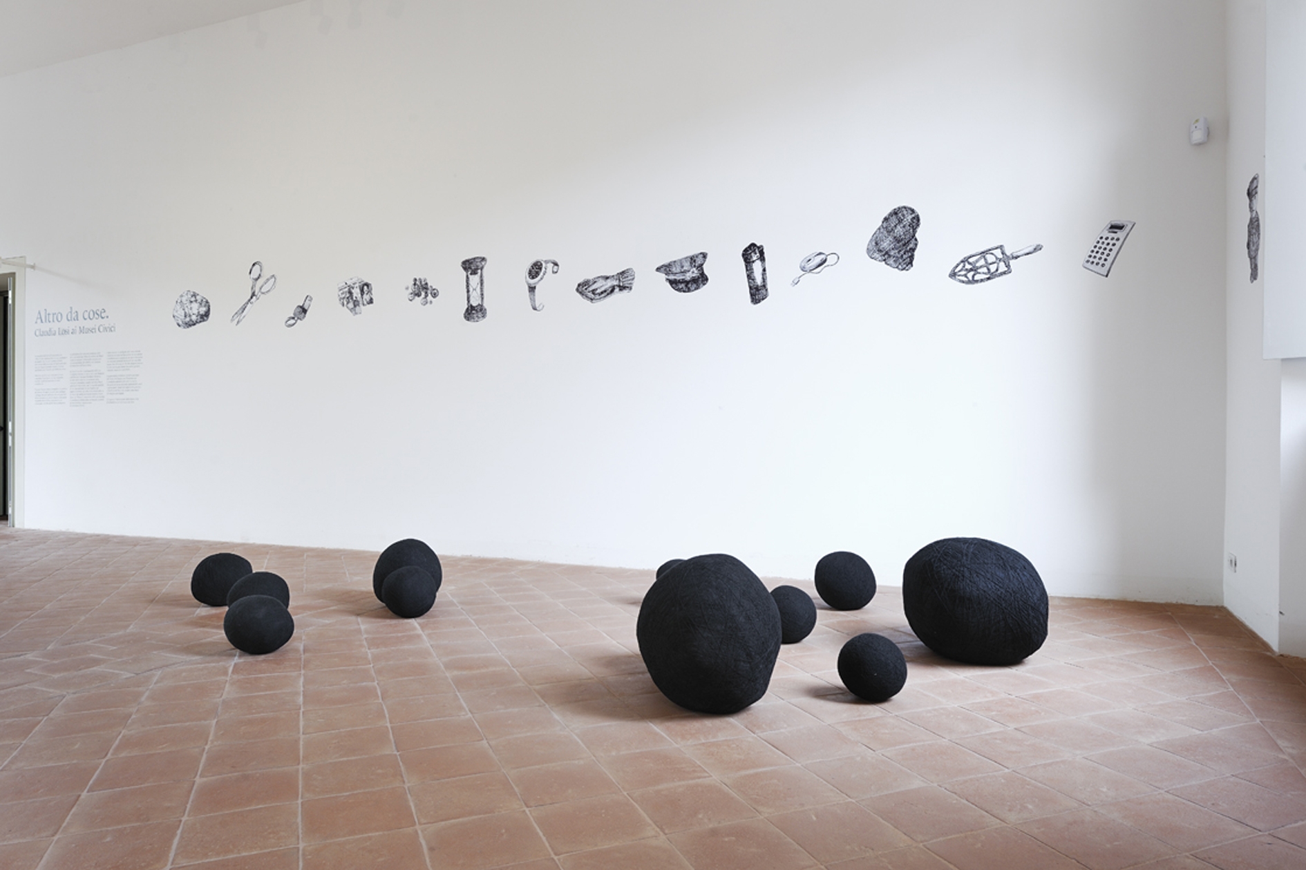 Quindici forme di filo nero, 175 oggetti donati da altrettanti cittadini, un reading che coinvolgerà dodici studenti di due scuole modenesi: sono alcuni degli elementi principali di “Altro da cose”, l'opera che l'artista Claudia Losi ha realizzato con la partecipazione dei modenesi e che sabato 24 novembre alle 17.30 troverà la sua collocazione definitiva nelle sale dei Musei civici di Modena, in largo Porta Sant'Agostino. L'appuntamento, dal titolo “Un'opera, tante storie”, vedrà la partecipazione dell'artista, dell'assessore alla Cultura del Comune di Modena Roberto Alperoli e del direttore scientifico del Festival filosofia Michelina Borsari. L'opera è stata infatti realizzata raccogliendo oggetti donati dai modenesi, in una performance dal vivo che si è svolta nei tre giorni dell'ultimo Festival filosofia “sulle cose”. Sabato sarà presentato il catalogo che contiene, oltre alle storie degli oggetti e ai nomi delle 175 persone che li hanno donati, un testo introduttivo del filosofo Remo Bodei. Dodici allievi del Liceo Muratori e dell'Istituto Deledda, che hanno collaborato alla raccolta degli oggetti e assistito l'artista nella realizzazione, daranno vita al reading evento “Storie di cose”. Si conclude così, con la definitiva “musealizzazione”, l'operazione collettiva voluta dai Musei modenesi, che ha fatto leva sul coinvolgimento del pubblico nella creazione dell’opera d’arte. Il catalogo raccoglie le storie e le immagini delle “cose” affidate alle cure dell’artista e da questa inglobate, appunto, all’interno di 15 forme di filo nero. Come ricorda Remo Bodei nell’introduzione al catalogo, tutti gli oggetti inseriti nell’opera racchiudono in sè “due storie, non sempre coincidenti, quella personale di chi li ha portati al museo e quella delle cose stesse nella loro origine”.Alla base dell'iniziativa si colloca la riflessione su come ciascuno di noi adotti degli oggetti e lentamente li trasfiguri in cose che evocano il ricordo di esperienze vissute, di persone care o di eventi che lo hanno toccato. Sono spesso cose modeste, come la maggior parte di quelle raccolte in occasione dell'evento: frammenti di intonaco caduti durante il recente terremoto che ha colpito l'Emilia o bottiglie che hanno sorprendentemente resistito alle scosse, fischietti di quando si era ferrovieri, fazzoletti da collo di viaggiatori, origami giapponesi, pistole ad acqua dell’adolescenza, ferri da stiro della nonna, falci appartenute ai padri. Una varietà di reperti che hanno due storie, non sempre coincidenti, quella originaria delle cose stesse e quella personale di chi li ha portati al museo.
