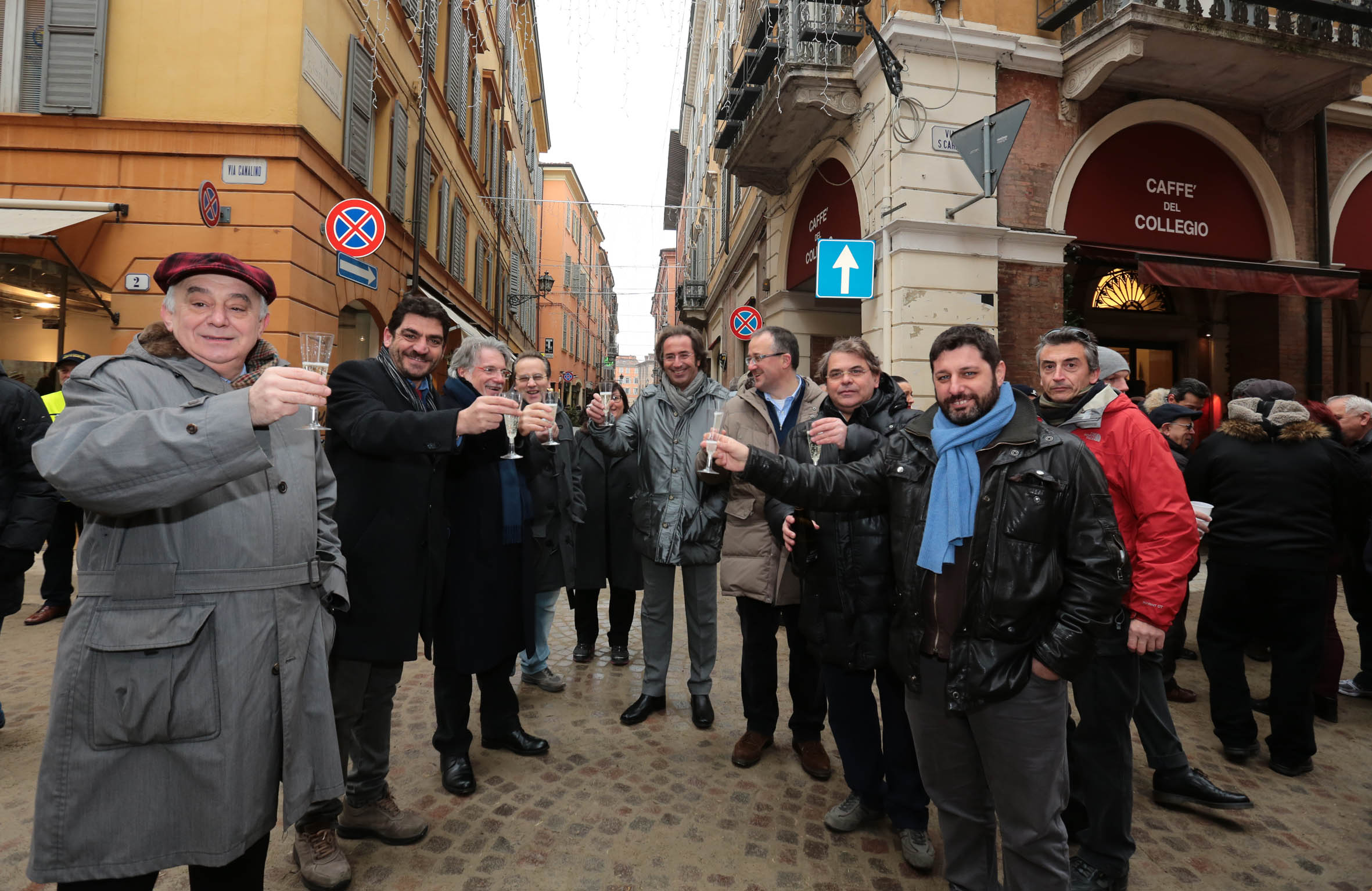 Gli interventi, realizzati dal Comune e da Hera spa, hanno riguardato via Castellaro, via San Carlo e via Canalino, dove proprio all’incrocio si è svolto il brindisi, mentre in precedenza avevano interessato via Scudari e piazza Grande.