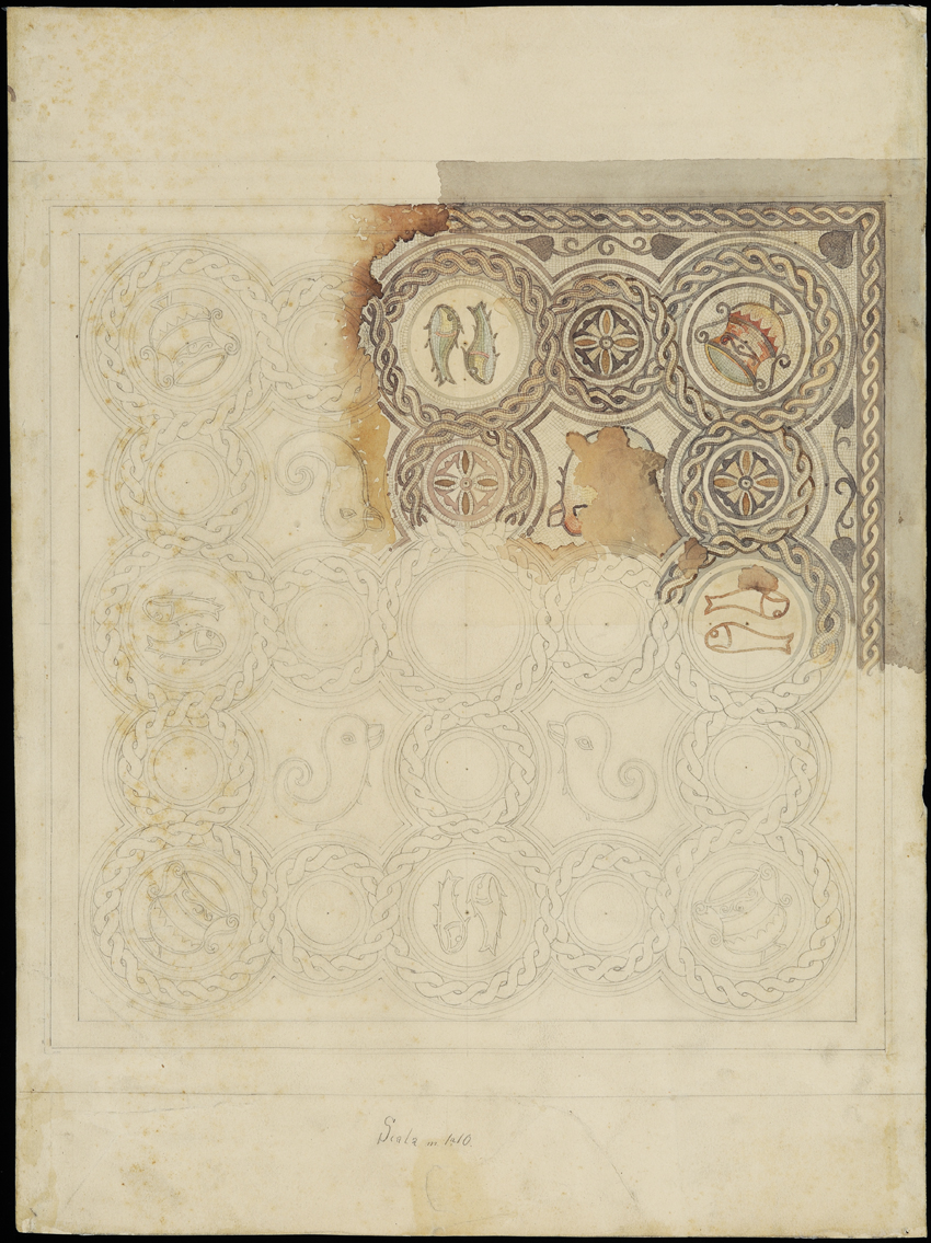 In età tardoantica la villa è oggetto di importanti opere di rifacimento. Anche se i dati forniti dallo scavo non consentono di definirne la tipologia architettonica e neppure di ipotizzarne l’estensione complessiva, è indubbio tuttavia che tra IV e V secolo la zona residenziale venne ampliata e arricchita con splendidi mosaici policromi. Lo scavo ha messo in luce un nucleo di cinque ambienti comunicanti. Quattro sono a pianta quadrata, ampi circa una ventina di metri quadrati ciascuno. Il quinto ambiente, aggiunto ex novo nel V secolo, aveva una dimensione di circa 35 metri quadrati ed era pavimentato con il grande mosaico esposto in mostra.. Si tratta probabilmente del vano principale della villa, in cui si dovevano celebrare la ricchezza e il potere del proprietario, probabilmente un personaggio di alto rango.