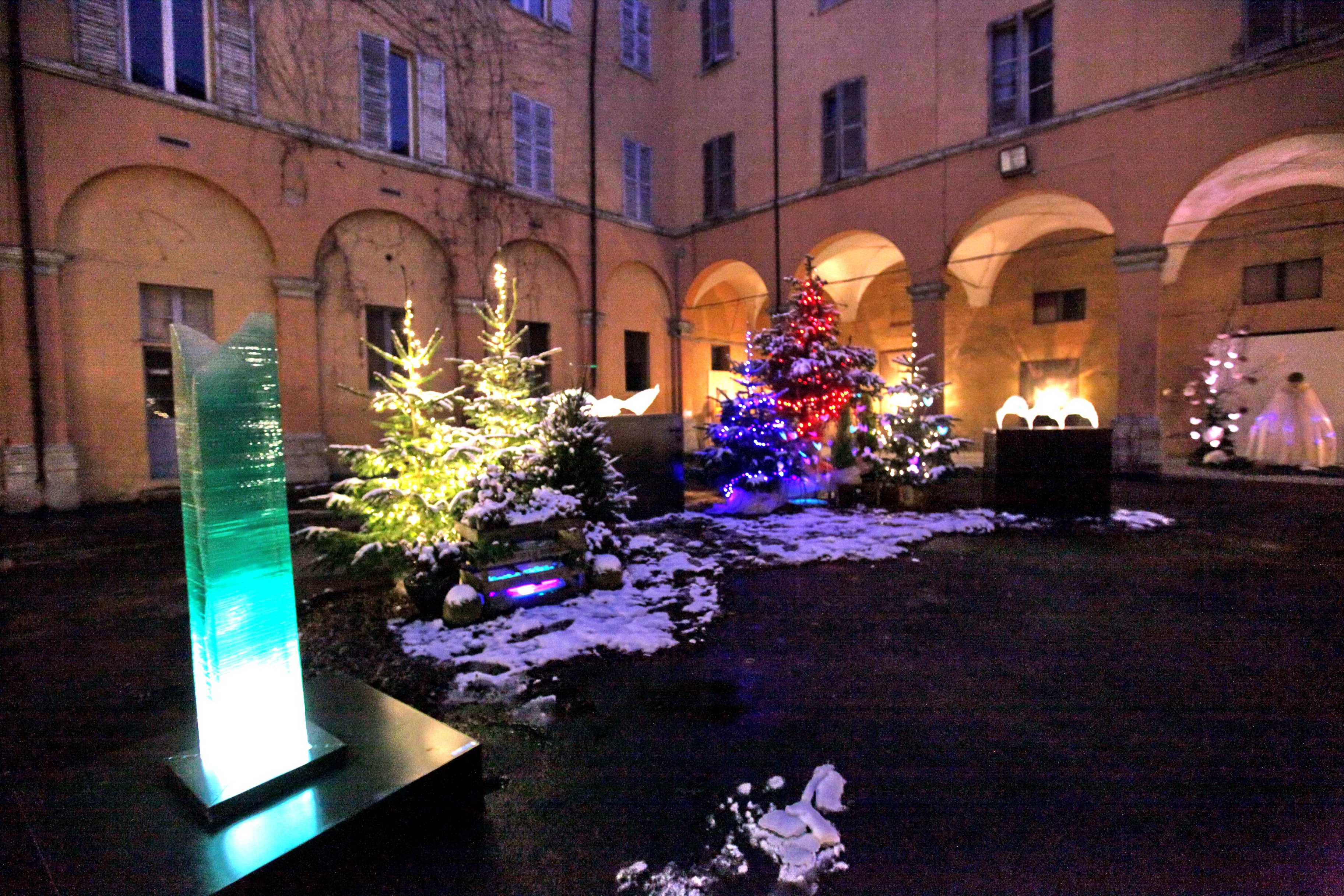 Tra le iniziative di ModenAmoremio per rendere ancora più attraente il cuore della città durante le festività natalizie è possibile visitare anche uno spazio solitamente chiuso restituito alla città. L’ex caserma dei Carabinieri di via Sant’Eufemia ospita, infatti, nel cortile interno, il “Piccolo borgo incantato” tra percorsi luminosi, giochi di luce e sculture di vetro e cristallo degli artisti Carlo Baldessari e Raffele Morini.