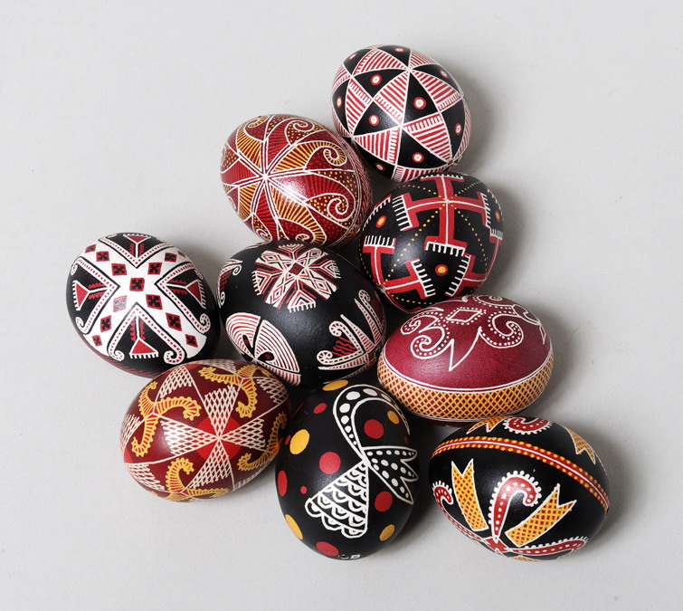 In Ucraina, e più in generale nell'Europa dell'Est, le uova sono simbolo di fertilità. Non è un caso che vengano fatte rotolare nei solchi dei campi appena seminati per proteggere il raccolto dalla rigidità dell'inverno. La tradizione delle uova decorate (Pysanka), di origine pagana, è stata assimilata nella religione cristiana a quella delle uova pasquali. Le decorazioni, che fanno riferimento ad un universo di simboli legati alla fertilità dei campi, vengono impresse sull'uovo con un pennino intinto di cera d'api fusa. Una volta che la cera si rapprende le uova vengono immerse nella tintura. Quando la cera viene sciolta con il calore di una candela, appaiono le decorazioni.