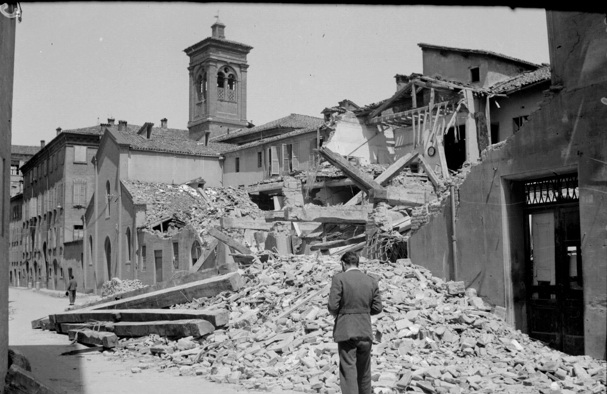 “La città inviolabile, il tabù che non doveva essere tocca dalla furia devastatrice degli Anglo-Americani, ha subito oggi il suo primo bombardamento”. Così Adamo Pedrazzi, nella sua “Cronaca dell'occupazione nazi-fascista di Modena”, descrive il primo attacco alleato alla città, il 14 febbraio 1944. I bombardamenti alleati durarono fino al 18 aprile del 1945; vi perirono 1016 persone in tutta la provincia, 368 in città.