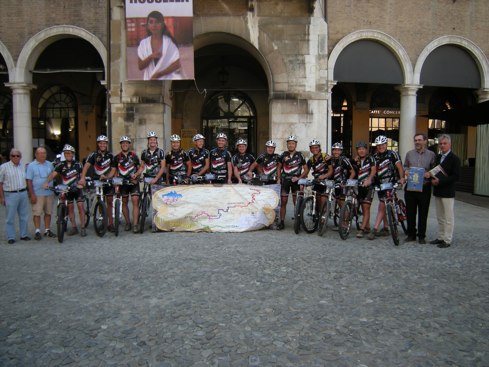 Sport, turismo e solidarietà. Questo il messaggio portato a Modena da quindici cicloturisti del Team Torretta Bike di Porcari, in provincia di Lucca, che questa mattina hanno iniziato un tour che da Modena li porterà a percorrere, in quattro giorni, la storica via Vandelli prima di fare ritorno a Porcari. Questa mattina ad accogliere in piazza Grande il gruppo storico che dal 1999 ha percorso migliaia di chilometri sui pedali in ogni parte d’Italia, c’era il vice sindaco Giuseppe Boschini, il vice presidente del Coni Modena Andrea Dondi, il presidente provinciale dalla federazione ciclistica Ercole Morselli e Luciano Vincenti presidente della Lega Uisp ciclismo. Nel cordiale incontro Franco Fanucchi, leader del gruppo toscano, ha portato il saluto di Porcari e della sua amministrazione. Nell’ultimo consiglio comunale il paese toscano ha deciso di essere vicino alle popolazioni modenesi colpite dal terremo mettendosi a disposizione per la realizzazione di un progetto condiviso. Il Team Torreta Bike, che vanta una settantina di iscritti, da anni promuove la pratica sportiva,, con particolare attenzione al ciclismo e ogni forma aggregativa sportiva.
