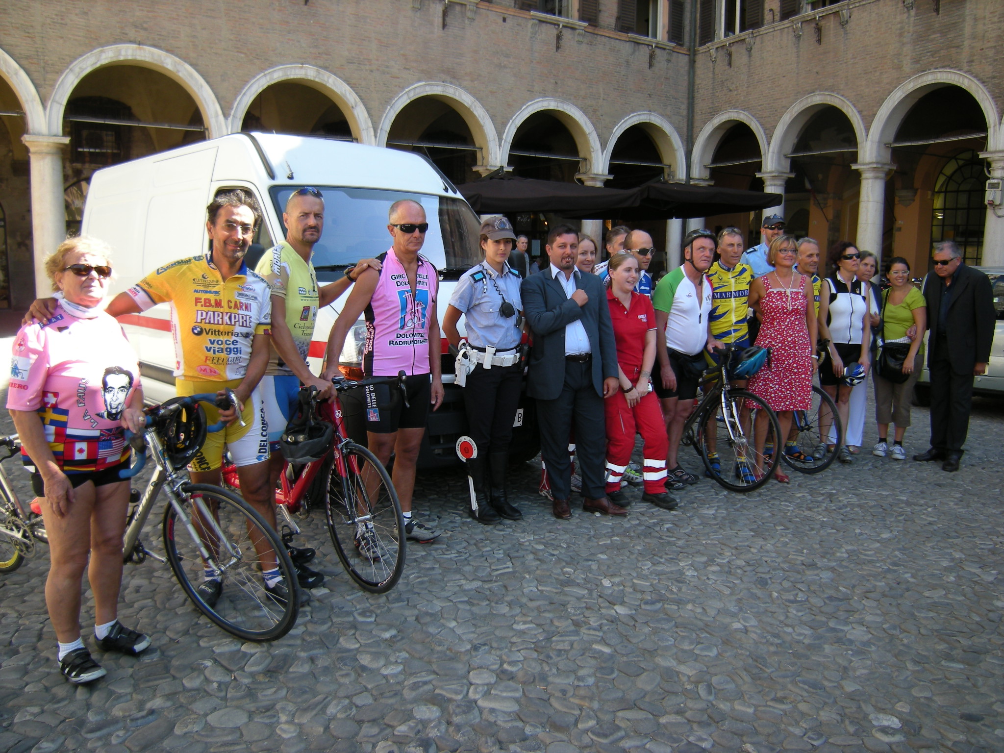Un gruppo di una decina di ciclisti non vedenti e ipovedenti e i loro accompagnatori sono stati ricevuti questa mattina, martedì 28 agosto, in piazza Grande dagli assessori Simona Arletti e Antonino Marino. I ciclisti ospiti della nostra città, che pedalano in sella a tandem stanno percorrendo le “strade del terremoto” Dopo aver visitato Modena toccheranno Mantova e Ferrara con lo scopo di portare un contributo da parte dei soci delle sezioni toscane come segno di condivisione e solidarietà e per continuare a tener viva l’attenzione dell’opinione pubblica attraverso una manifestazione sportiva che potrebbe richiamare la presenza dei mass media. Il Consiglio Regionale dell’Unione Italiana dei Ciechi e degli Ipovedenti organizza annualmente un ciclotour in tandem. I soci hanno già vissuto un tour in Toscana per ricordare i duecento anni della nascita di Louis Braille, uno per raggiungere il passo dello Stelvio in occasione del 90esimo anniversario della costituzione della loro associazione e, l’anno scorso, uno con tappe da Torino, passando per Firenze fino ad arrivare a Roma in occasione dei festeggiamenti dei 150 anni dell’Unità d’Italia.