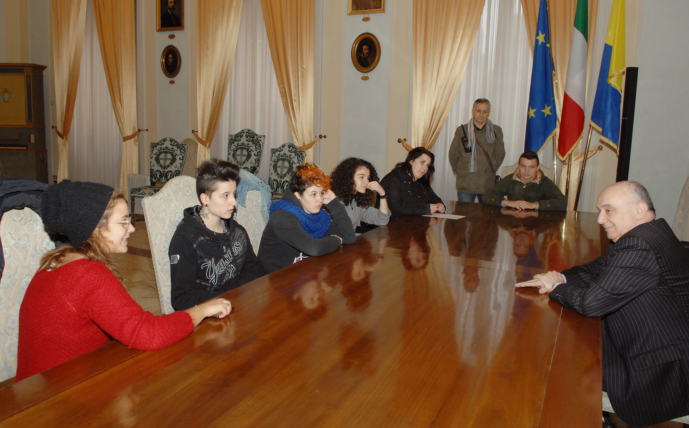 Una delegazione di studenti del liceo socio-psico-pedagogico Sigonio di Modena è stata ricevuta dal sindaco Giorgio Pighi questa mattina, lunedì 18 novembre, in Municipio, prima che fossero completati i controlli che hanno portato alla decisione di sostituire il controsoffitto del secondo piano dell’edificio