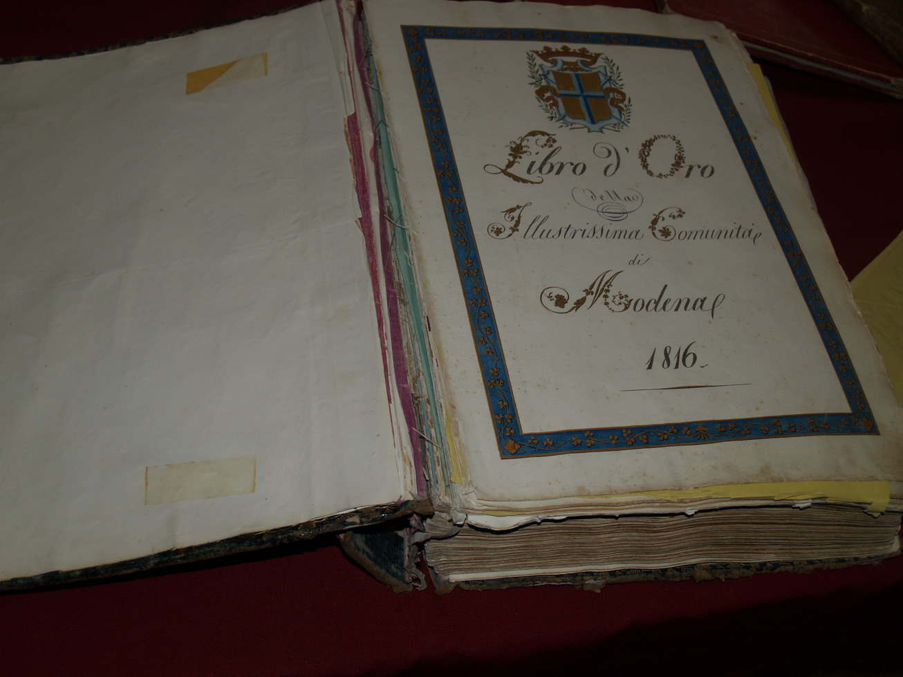 Quattro preziosi e antichi manoscritti che documentano la storia della città, recentemente restaurati, saranno presentati giovedì 14 febbraio alle 17.15 all'Archivio storico del Comune di Modena in viale Vittorio Veneto 5. Si tratta del “Libro d'oro della Comunità di Modena” (1816), della “Vacchetta dei Giustiziati” (1593 – 1826) e di due volumi della “Cronaca Sossaj” (1819 – 1821). Durante l'incontro, che si concluderà con un piccolo rinfresco, saranno letti alcuni brani tratti dalla “Vacchetta” e dalla “Cronaca”. Saranno presenti il sindaco di Modena Giorgio Pighi e il dirigente Giampiero Palmieri. Il restauro è stato curato dal Comune di Modena in accordo con la Soprintendenza Archivistica per l'Emilia Romagna ed eseguito da Pierangelo Faggioli con il coordinamento di Franca Baldelli.