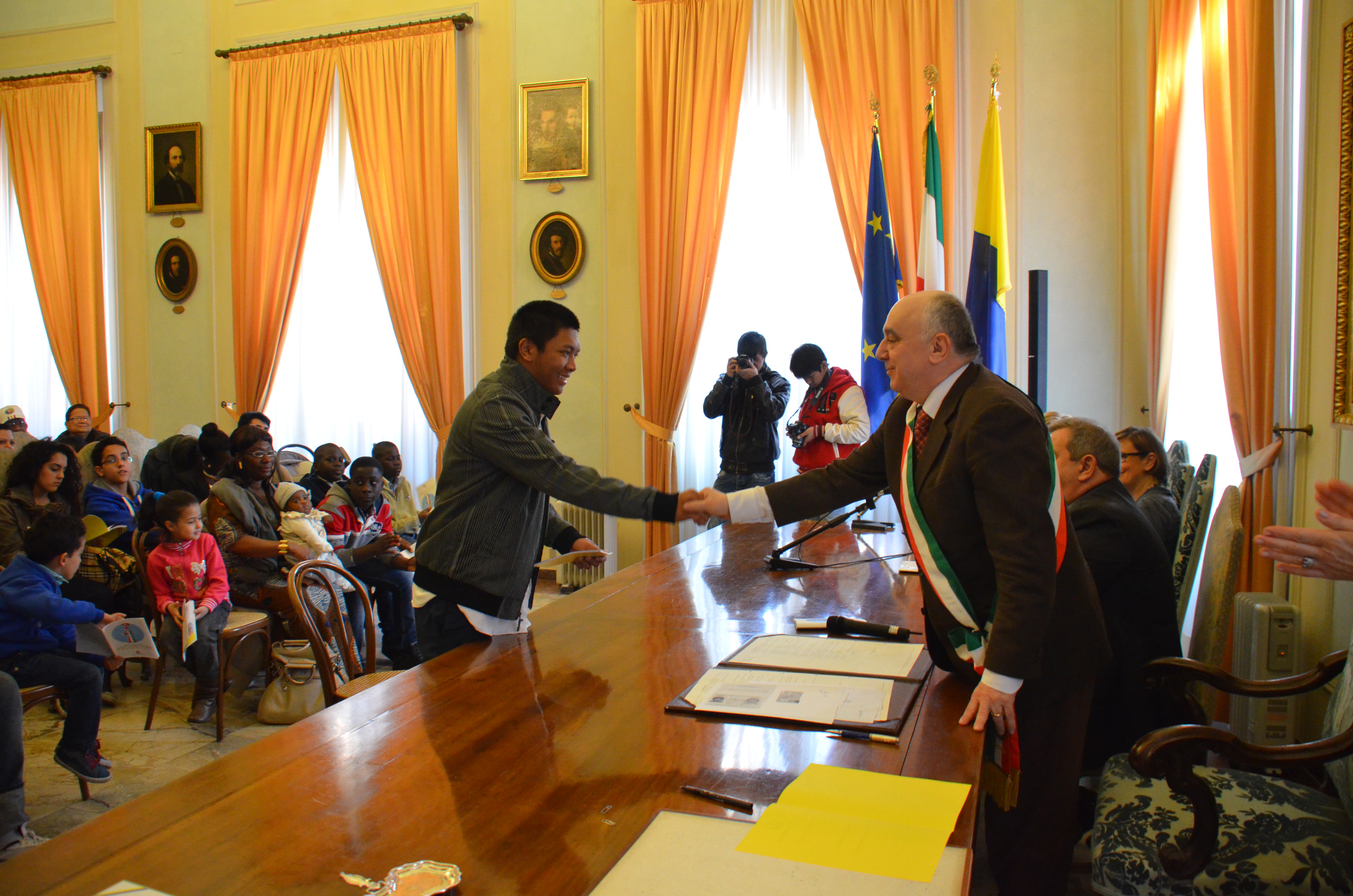 Si tratta di due ragazzi nati in Italia e appena divenuti maggiorenni, di marito e moglie con tre figli e di altri due genitori rispettivamente con tre figli ciascuno. Con l’atto automaticamente anche i minori sono a tutti gli effetti cittadini italiani, ma per quelli che, seppur nati in Italia, non hanno genitori con cittadinanza italiana, la legge prevede che al compimento del 18esimo anno di età debbano fare esplicita richiesta di cittadinanza per ottenerla.