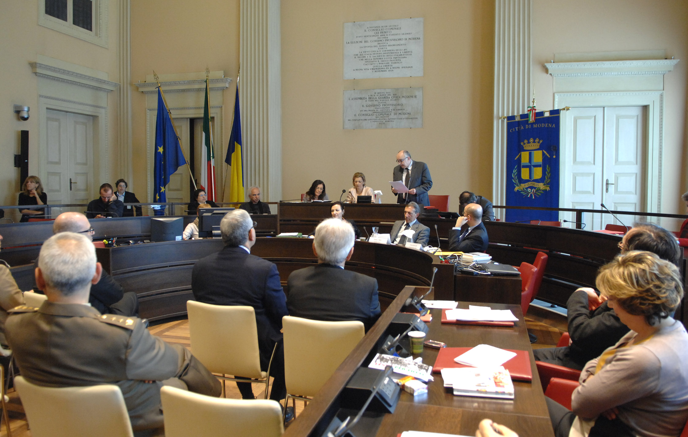 “Quello stesso Consiglio, che reca ancora i segni della memoria – ha affermato la presidente Caterina Liotti - esattamente 68 anni dopo, ospita la seduta straordinaria per la celebrazione della Liberazione di Modena che abbiamo voluto intitolare ‘Costruire la democrazia’. Modena, Medaglia d’oro al valor militare con decine di medaglie d’oro e d’argento conferite a modenesi e 19mila 318 partigiani riconosciuti, intende soprattutto riflettere sul dopo - ha detto la presidente in apertura del Consiglio straordinario di lunedì 22 aprile - per contribuire a indirizzare il dibattito politico, soprattutto in un momento così convulso. E intende farlo – ha continuato Liotti - con un occhio particolare alle donne alle quali saranno dedicate anche le iniziative del 25 Aprile, perché senza le donne la Resistenza non sarebbe stata possibile”.