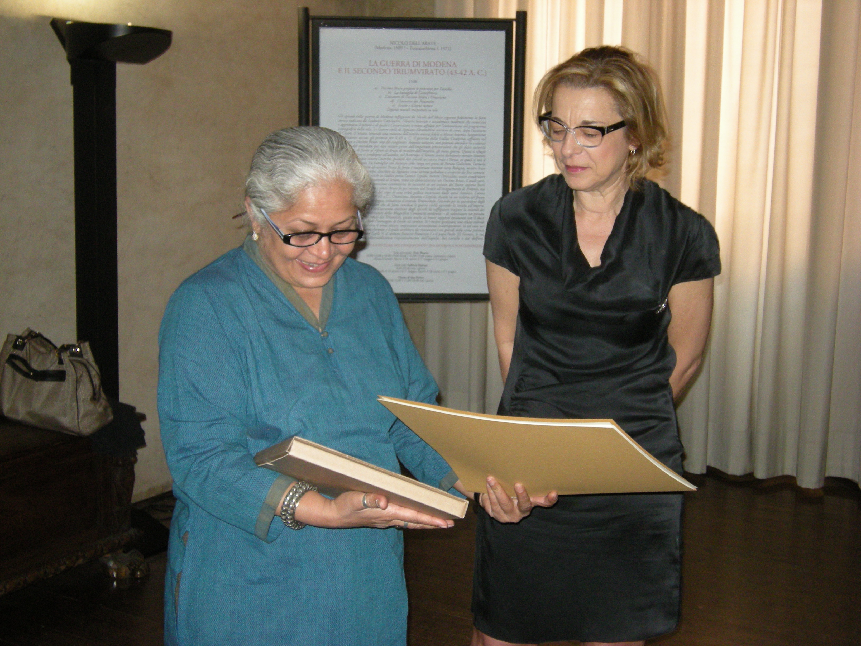 Durante l’incontro, Pradeep e Mala Shina hanno illustrato le modalità di lavoro adottate nella loro azienda che ha sede a Baroda, nello stato indiano del Gujarat, secondo il principio di sostenibilità e nel rispetto dell’ambiente e della qualità del lavoro. Liotti e Poggi gli hanno infine donato ai due ospiti il volume “Momenti a Modena” di Beppe Zagaglia, alcune stampe della città antica e la pubblicazione “UUU Una Unica Unità”.