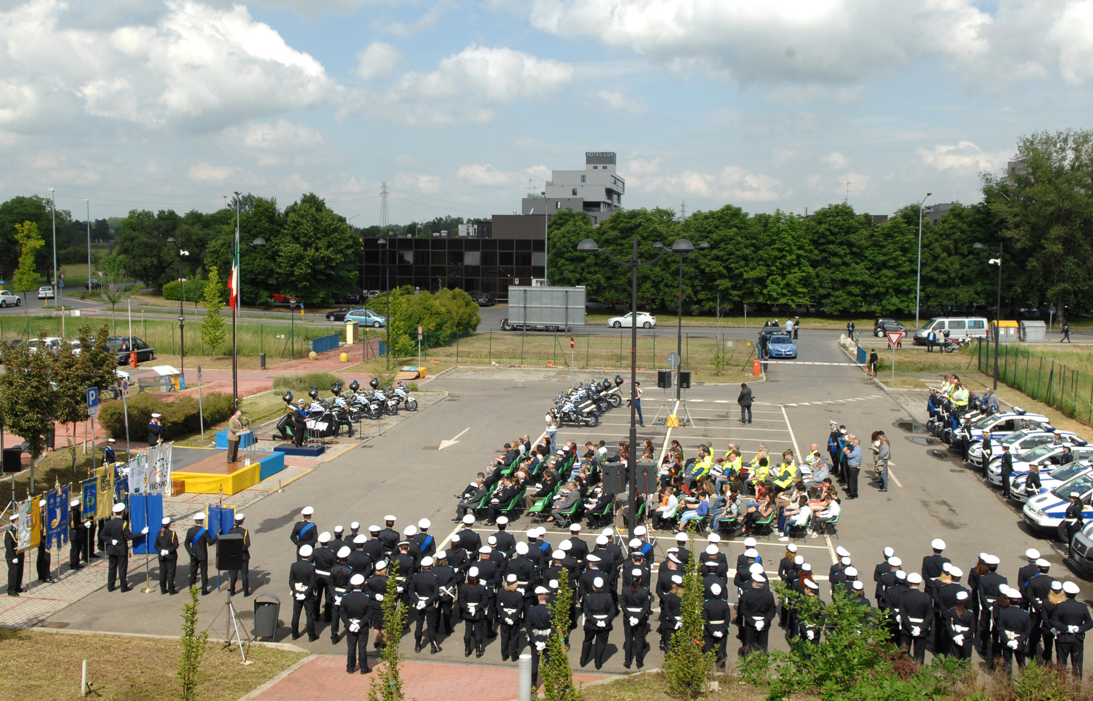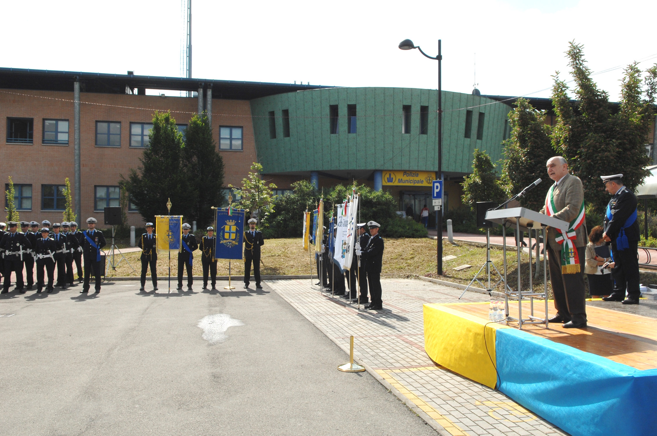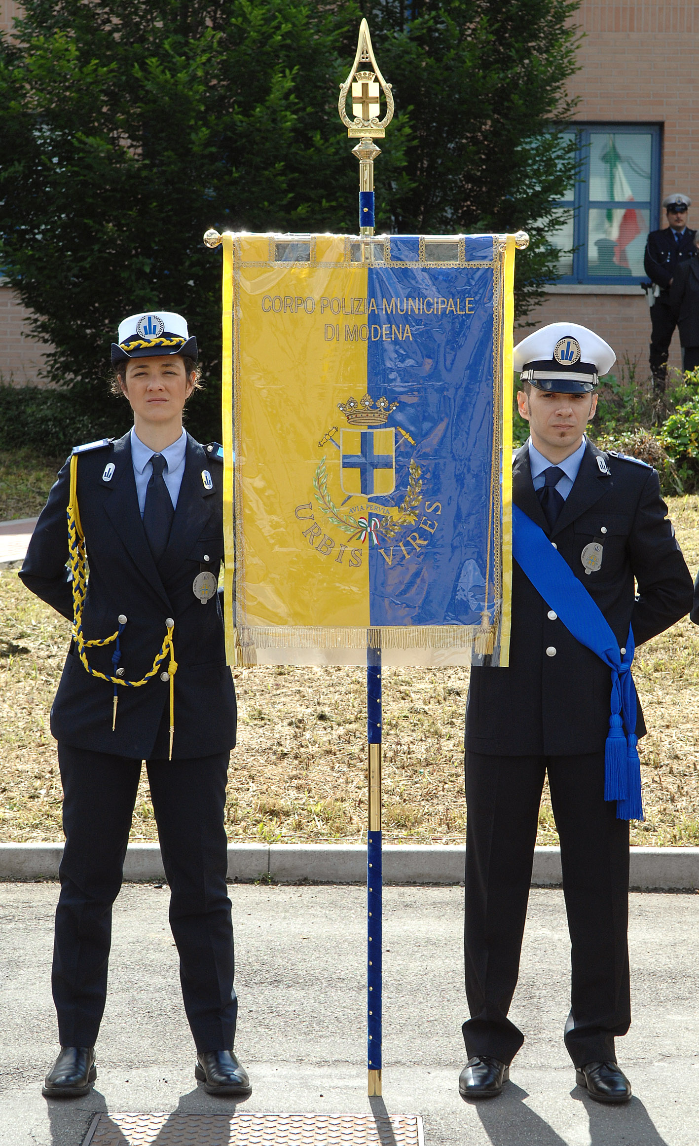 Da oggi, giovedì 23 maggio 20123 il corpo di Polizia municipale ha il proprio labaro, i colori scelti sono il giallo e il blu su cui campeggia la scritta “Urbis vires”, le forze della città. La consegna è avvenuta nel corso del 153 anniversario della fondazione del corpo che si è svolto nell’area esterna del comando in via Galilei 165 davanti agli operatori schierati.