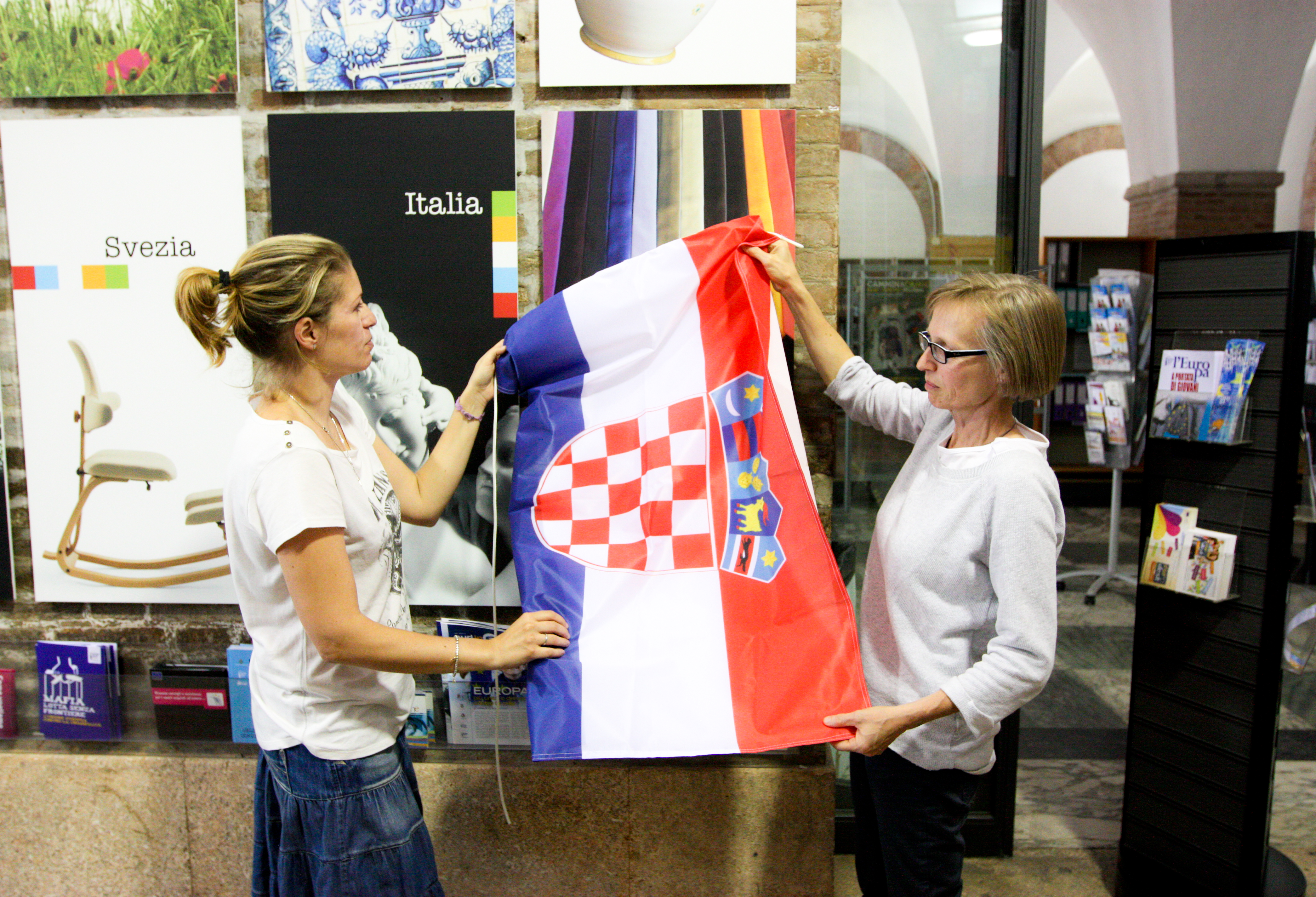 Accanto allo champagne francese, al the britannico, alle porcellane del Lussemburgo, al cubo di Rubik ungherese e ai mirtilli cechi, ecco spuntare le cravatte croate. E’ questo, infatti, il simbolo scelto per rappresentare la Croazia, che da lunedì 1 luglio diventa il 28° Paese dell’Unione europea, nella mostra permanente allestita al centro Europe Direct di Modena, in piazza Grande, dove è esposto anche un manufatto del Muro di Berlino.