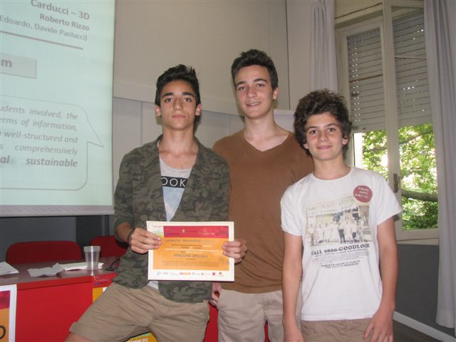Per le scuole medie hanno vinto la classe 1^I della Scuola Calvino e il progetto di Lorenzo Calandra Bonura della 1^D delle Carducci-Sola. Menzione speciale al gruppo della 3^D delle Carducci-Sola che ha realizzato il sito web “ModenaFuture” (http://modenafuture.weebly.com/).