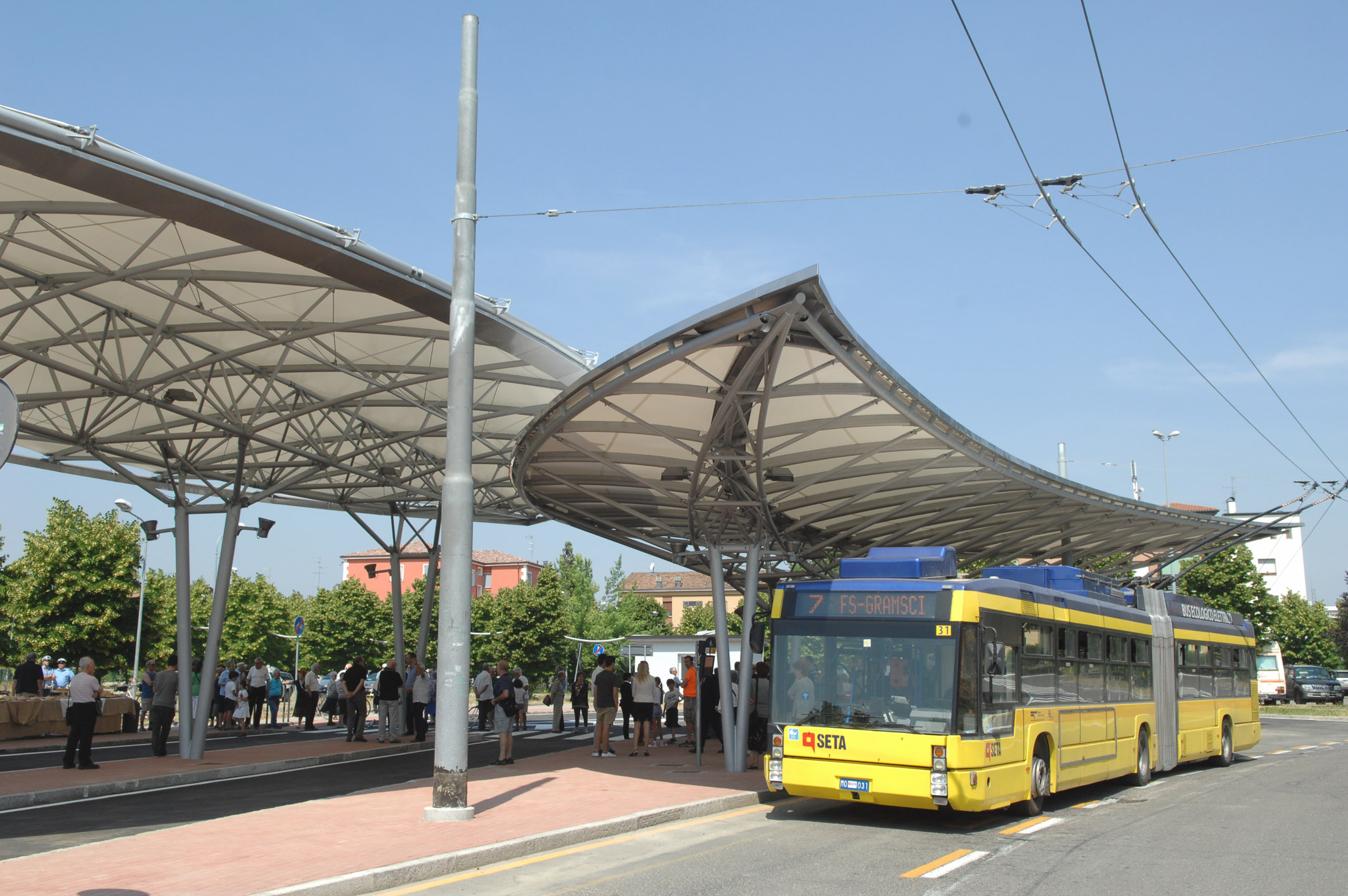 Con queste parole il sindaco di Modena Giorgio Pighi ha accompagnato il taglio del nastro del terminal per autobus di via Gottardi, che si è svolto questa mattina, sabato 15 giugno, presso il Polo universitario. Presenti anche gli assessori alla Programmazione e gestione del territorio Gabriele Giacobazzi e all’Ambiente Simona Arletti, il presidente dell’Agenzia per la mobilità (aMo) Maurizio Maletti, il presidente di Seta Pietro Odorici e il presidente della Circoscrizione 3 Loris Bertacchini. Per l’intera mattina nell’area adiacente si è svolto un mercato a km zero dei produttori agricoli locali.