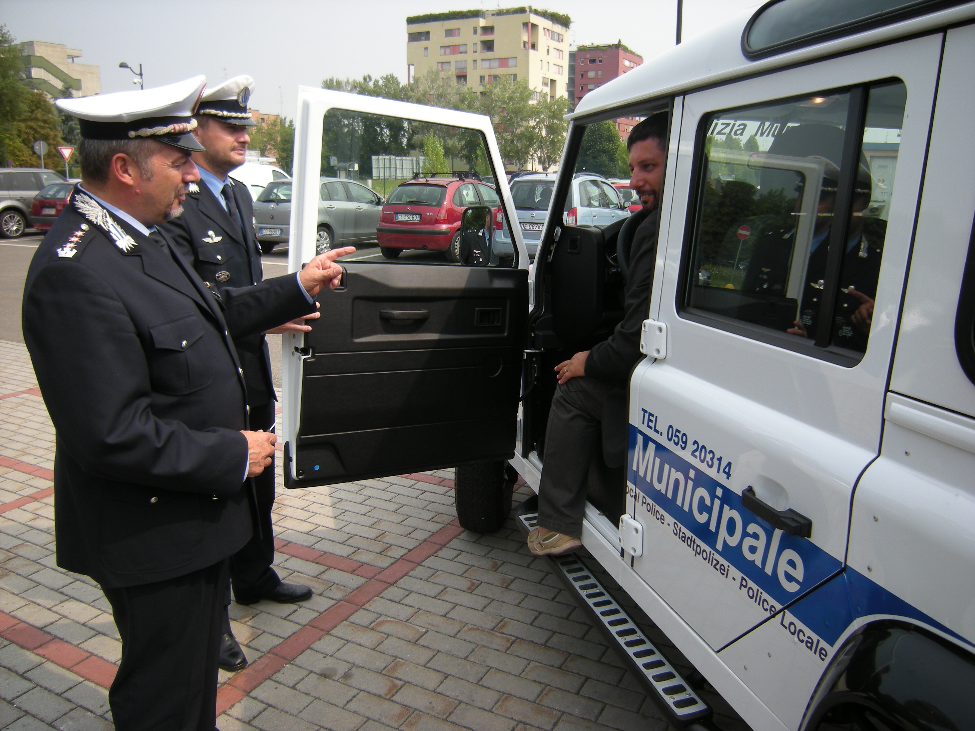 La Polizia Municipale di Modena da oggi,giovedì 11 luglio, dispone di un nuovo mezzo operativo attrezzato per i servizi di emergenza e di protezione civile. Alfa 36 è la sigla attribuita al nuovo fuoristrada Land Rover Defender a passo lungo, acquistato presso il concessionario Ferrari Giorgio S.r.l. di Modena, con il contributo della Regione Emilia Romagna, nell'ambito dell'Accordo di Programma, giunto ormai all'ultimo anno di applicazione. L’accordo ha permesso di aumentare il personale in servizio mediante nuove assunzioni e di adeguare l'intero sistema di comunicazioni radio e le attrezzature tecniche ed informatiche che in Via Galilei sono ormai utilizzate in ogni campo di attività. Il nuovo veicolo, dotato di verricello anteriore, sarà utilizzato nei normali servizi di controllo del territorio e di polizia edilizia e ambientale oltre che, naturalmente, nelle situazioni di emergenza stagionali come quelle già sperimentate in occasione di allagamenti, neve e ghiaccio.