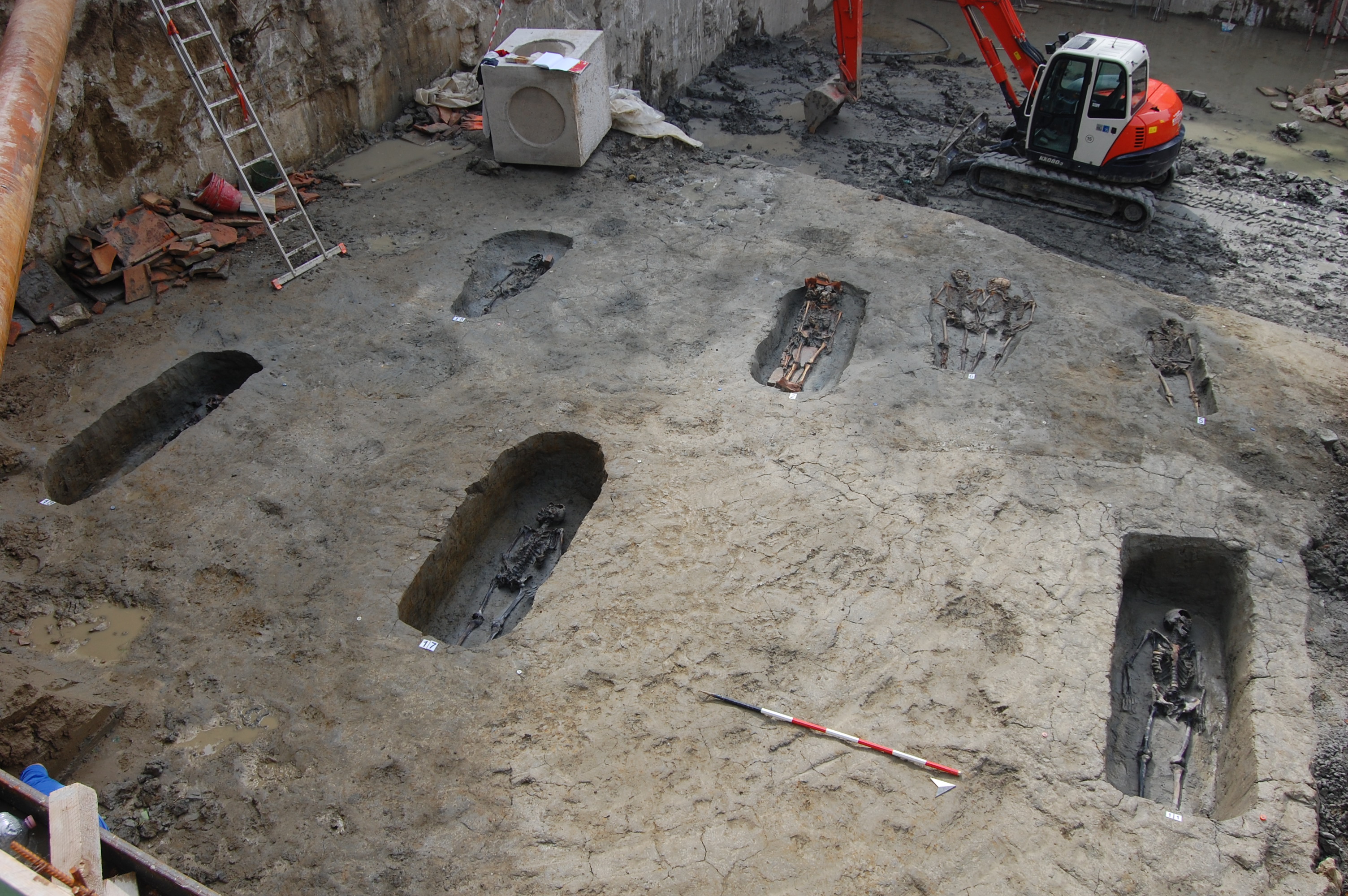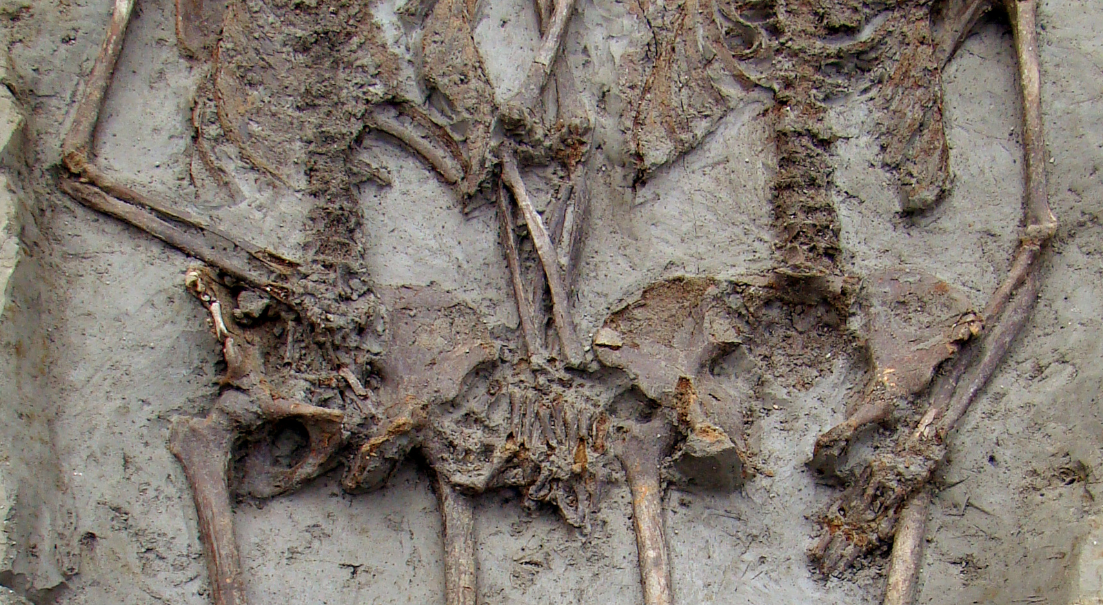 Il ritrovamento di due defunti sepolti contemporaneamente all’interno di un solo sepolcro, tuttavia, potrebbe essere anche indizio di pratiche rituali che comportavano il sacrificio della donna in seguito alla morte dell’uomo, attestate anche in epoca tardoantica. Il sepolcreto nel quale si trovava la tomba della coppia accoglieva anche altri membri della comunità. La parte principale della necropoli era riservata a sepolcri di uomini feriti a morte da colpi di spada, forse nel tentativo di difendere le loro case e le loro famiglie, e per questo onorarti come eroi. Non è ancora possibile precisare l’origine di questa comunità, che alcuni elementi, quali ad esempio il rituale funerario, farebbero supporre di origine germanica.