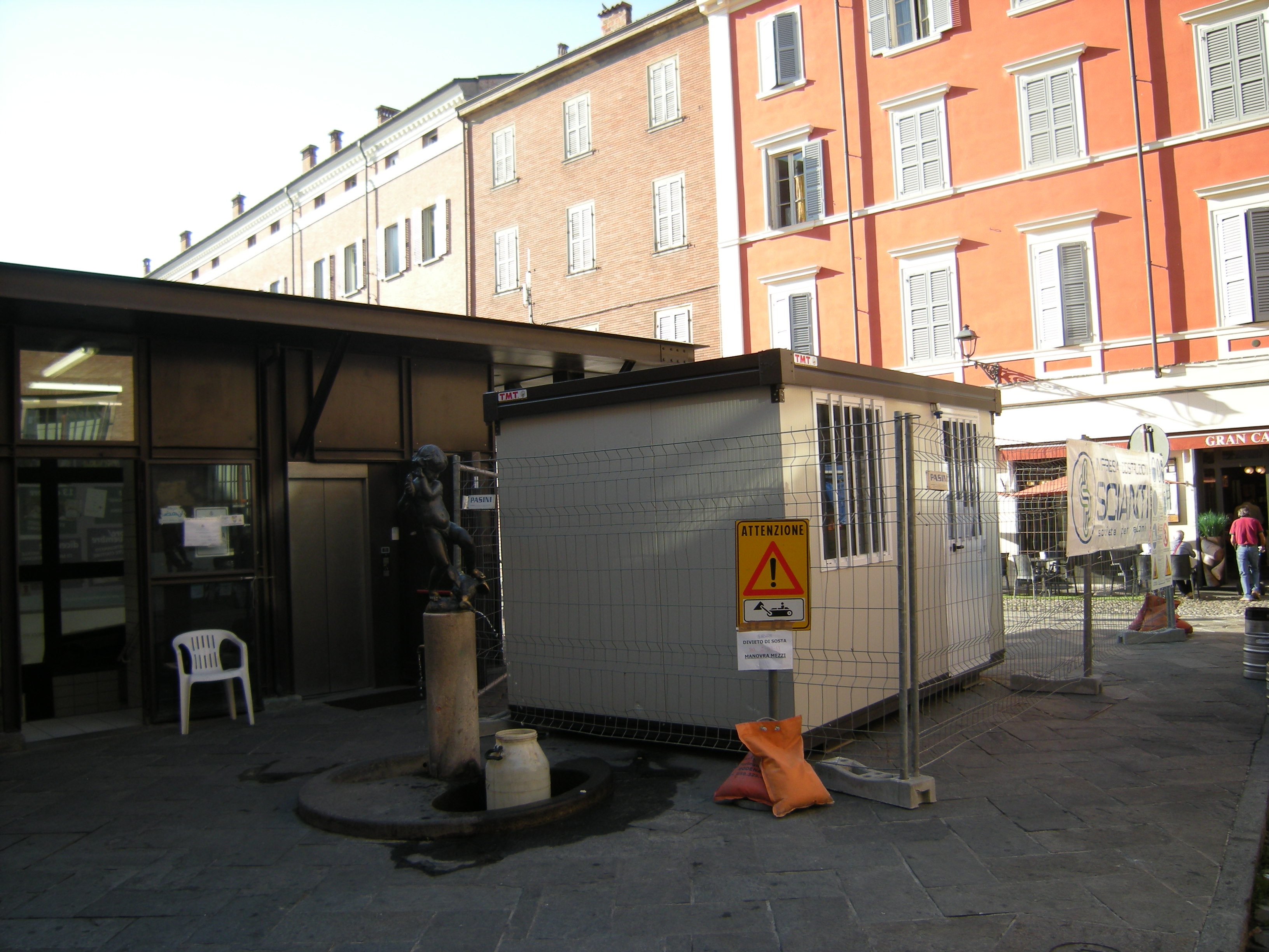 Sono iniziati in queste ore i lavori di preparazione per l’apertura del cantiere che porterà al rifacimento dei bagni pubblici in piazza XX Settembre. Già da lunedì pomeriggio i tecnici del Consorzio stabile modenese, ditta che si è aggiudicata l’appalto, hanno collocato le recinzioni che delimitano la zona del cantiere e un container direzione lavori e spogliatoio. Nelle prossime ore saranno montati una serie di bagni provvisori che saranno a disposizione gratuita del pubblico durante il periodo dei lavori.