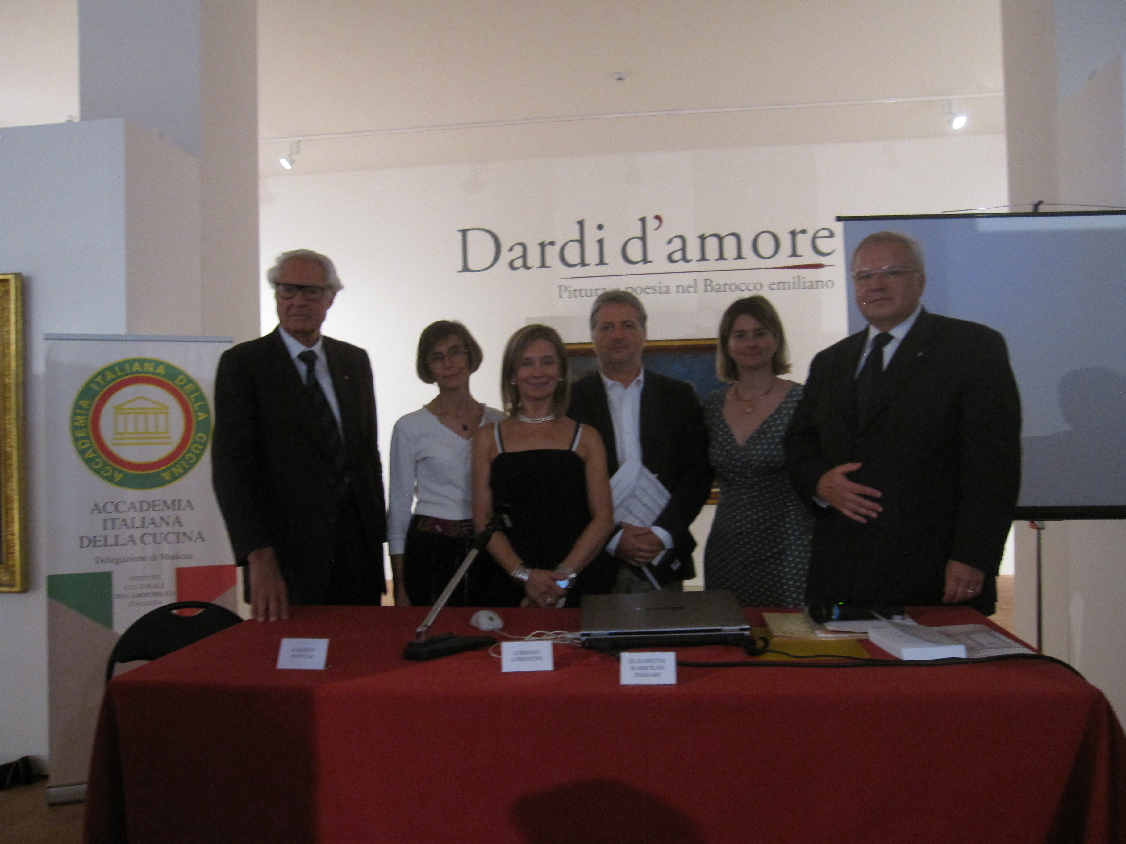 La presentazione ufficiale del manufatto, nelle sale del Museo in largo Porta Sant'Agostino 337, si è aperta con i saluti di Roberto Olivi Mocenigo, delegato di Modena dell'Accademia Italiana della Cucina, e Francesca Piccinini, direttrice del Museo Civico d'Arte di Modena. Alberto Bertoni dell'Università di Bologna che ha presentato una relazione sulla “Buona tavola negli scritti modenesi”, Lorenzo Lorenzini del Museo Civico d'Arte ha affrontato il tema dell'“Arte a tavola, fra apparati e fonti storiche” ed Elisabetta Barbolini Ferrari, art advisor, ha ripercorso la storia della ceramica a Sassuolo.