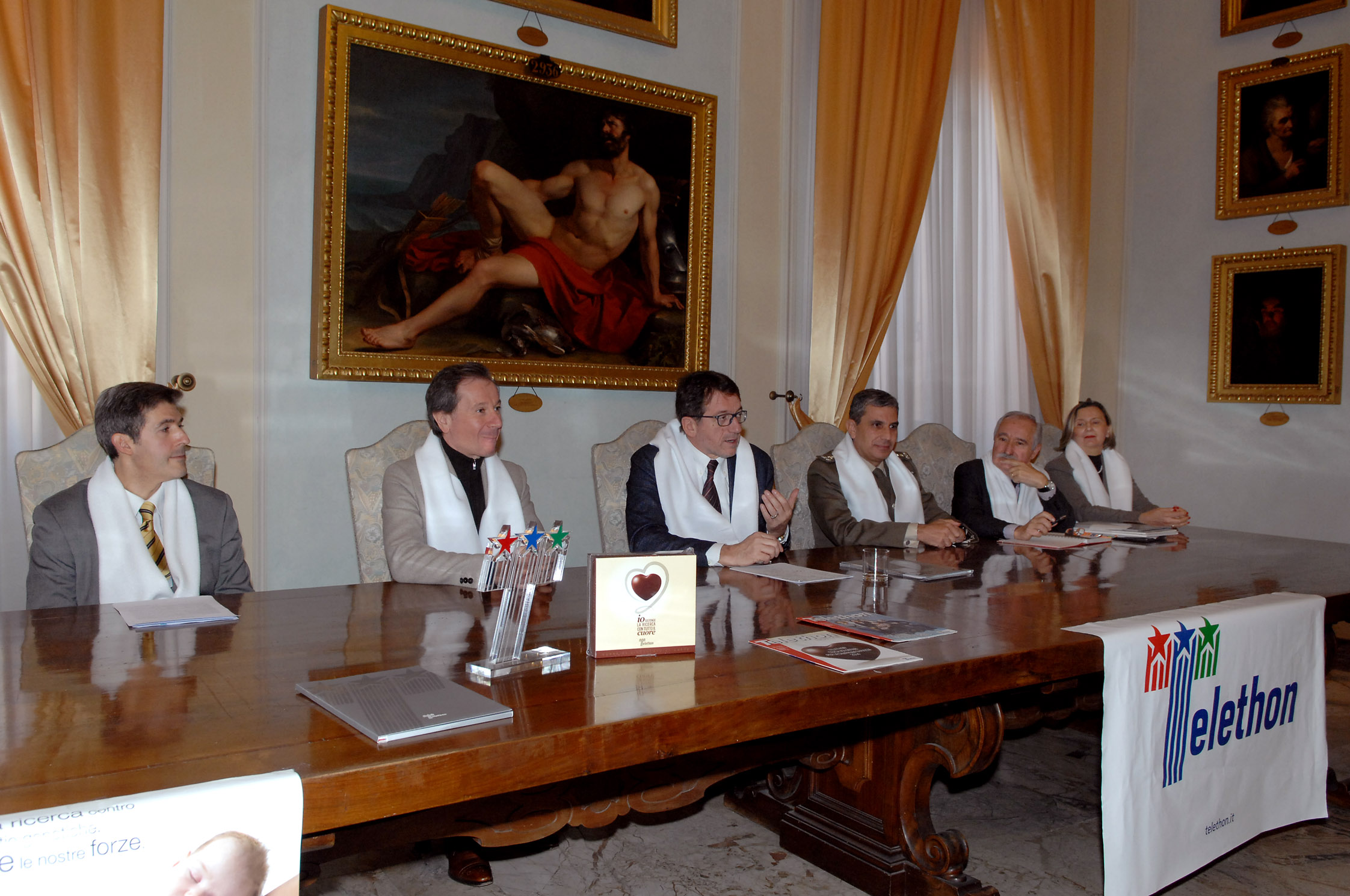 Le iniziative in programma a Modena e provincia, realizzate in collaborazione con i partner di Telethon, sono state illustrate questa mattina in Municipio nel corso di una conferenza stampa a cui, oltre al sindaco, hanno partecipato il coordinatore Telethon Modena Ermanno Zanotti, il comandante dell’Accademia militare (dove il 12 dicembre si svolgerà il concerto della Casual Band) Salvatore Camporeale e l’astronauta modenese, originario di Zocca, Maurizio Cheli. Erano inoltre presenti i rappresentanti di diversi partner delle iniziative, come Gianluca Gavioli per la Bnl, Maria Lugli presidente della Uildm di Modena e una rappresentanza degli Alpini.