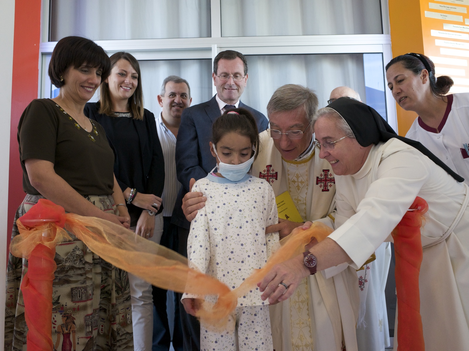 I nomi delle persone che hanno preso parte a questo progetto, voluto dall’associazione “Un ponte verso Betlemme” e Rock No War, sono incisi nella parete di ingresso alla Play Room. Tra questi quelli dei presenti all’inaugurazione dello scorso 8 ottobre ovvero Stefano Prampolini, Valentina Lanzilli, Luigi Ottani, Gianni Ferraguti, Franco Gualtieri, Antonio Mascolo e don Franco Borsari. Tante infatti le iniziative organizzate in questi anni, che hanno permesso di raccogliere circa 70 mila euro, consegnati a suor Donatella Lessio, responsabile della formazione e colonna portante dell’ospedale, che da anni porta avanti quella che lei definisce “un’Intifada pacifica con il padre eterno”.