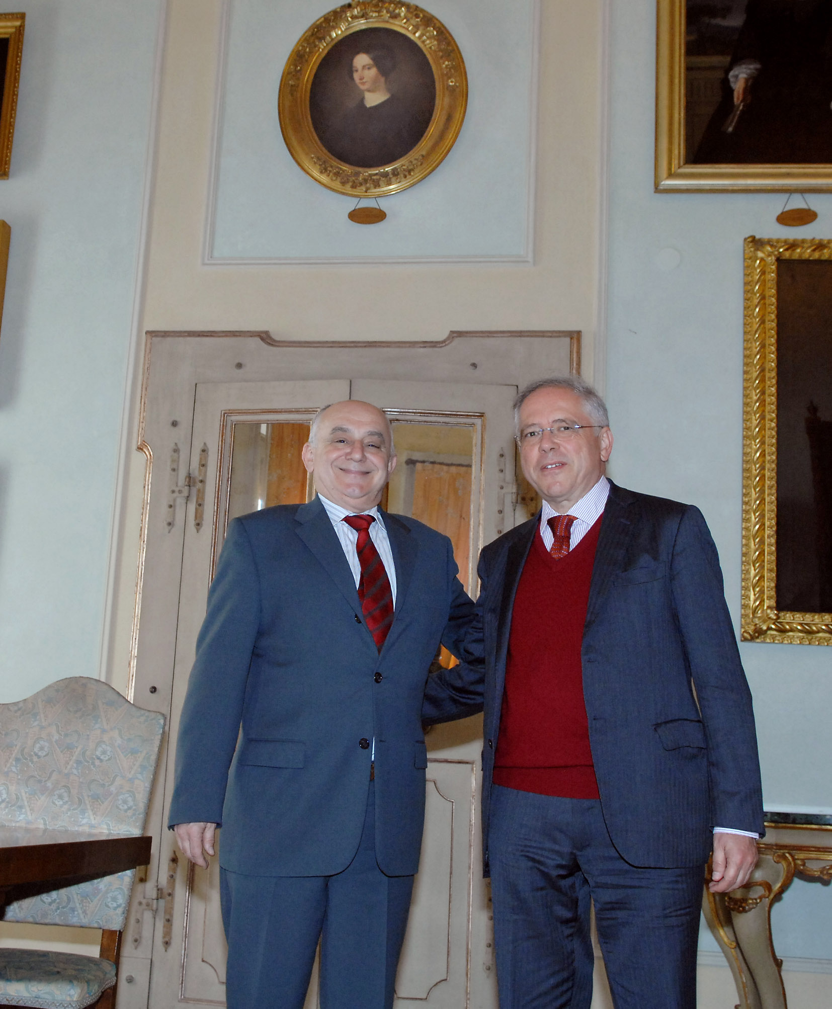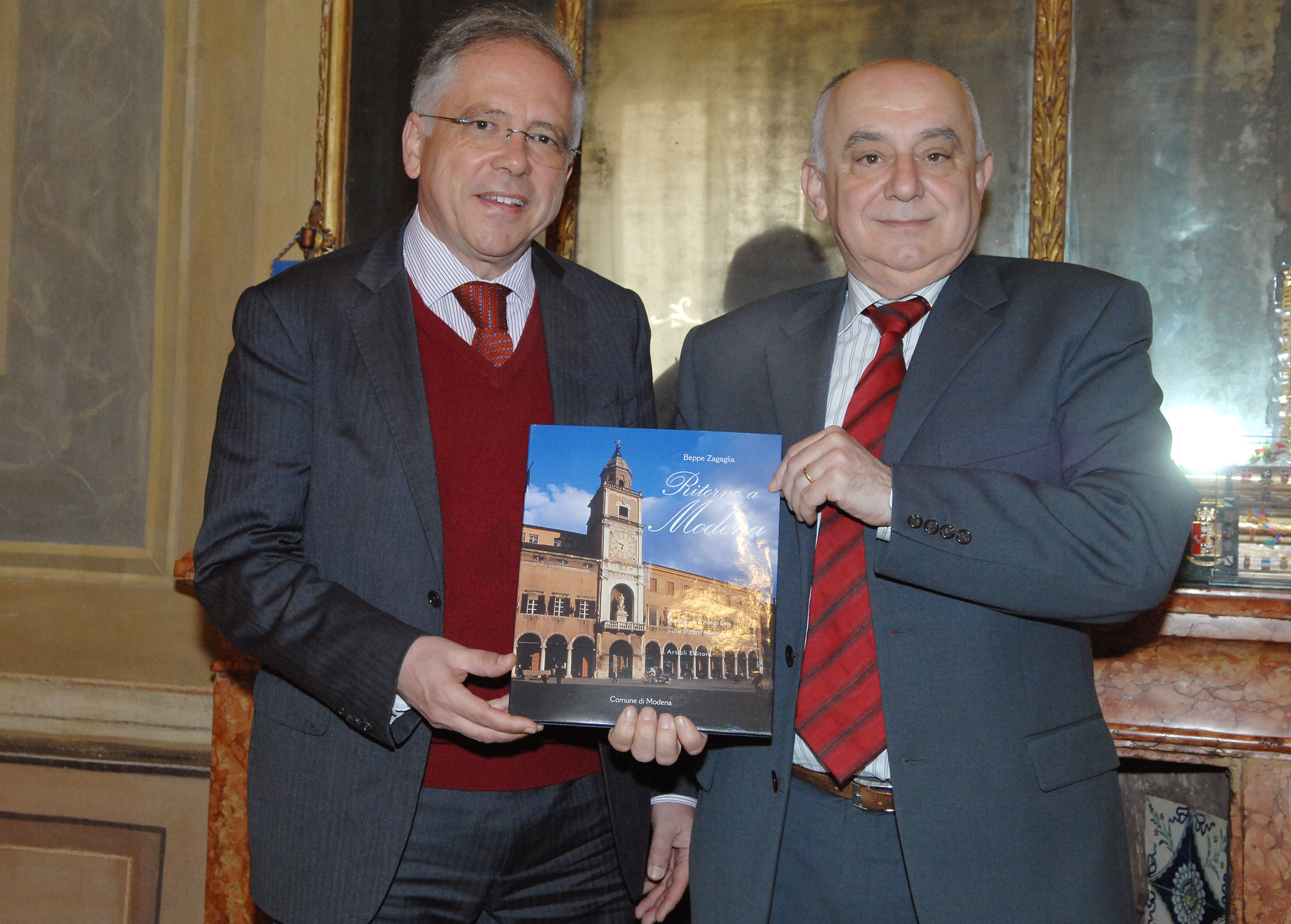 Il Sindaco di Modena Giorgio Pighi ha ricevuto oggi, martedì 25 marzo, in Municipio Peter Von Wesendonk, console generale aggiunto della Repubblica federale tedesca a Miliano. Il console era accompagnato da Gianni Braglia in rappresentanza dell’associazione Terra e identità. L’incontro è servito per verificare la possibilità di organizzare iniziative per celebrare il centesimo anniversario della morte di Adelgonda di Baviera, moglie di Francesco V d’Austria – Este, ultima duchessa di Modena deceduta il 28 ottobre 1914. L’ipotesi discussa nel corso dell’incontro è stata l’organizzazione di una mostra a pannelli itinerante in alcune città bavaresi su Adelgonda e sulla storia di Modena come veicolo culturale e al tempo stesso promozione del nostro territorio. Nel corso del dialogo sono state ipotizzate altre iniziative di carattere culturale e di interesse generale. Al termine dell’incontro Giorgio Pighi ha regalato all’ospite un volume sulla storia di Modena.
