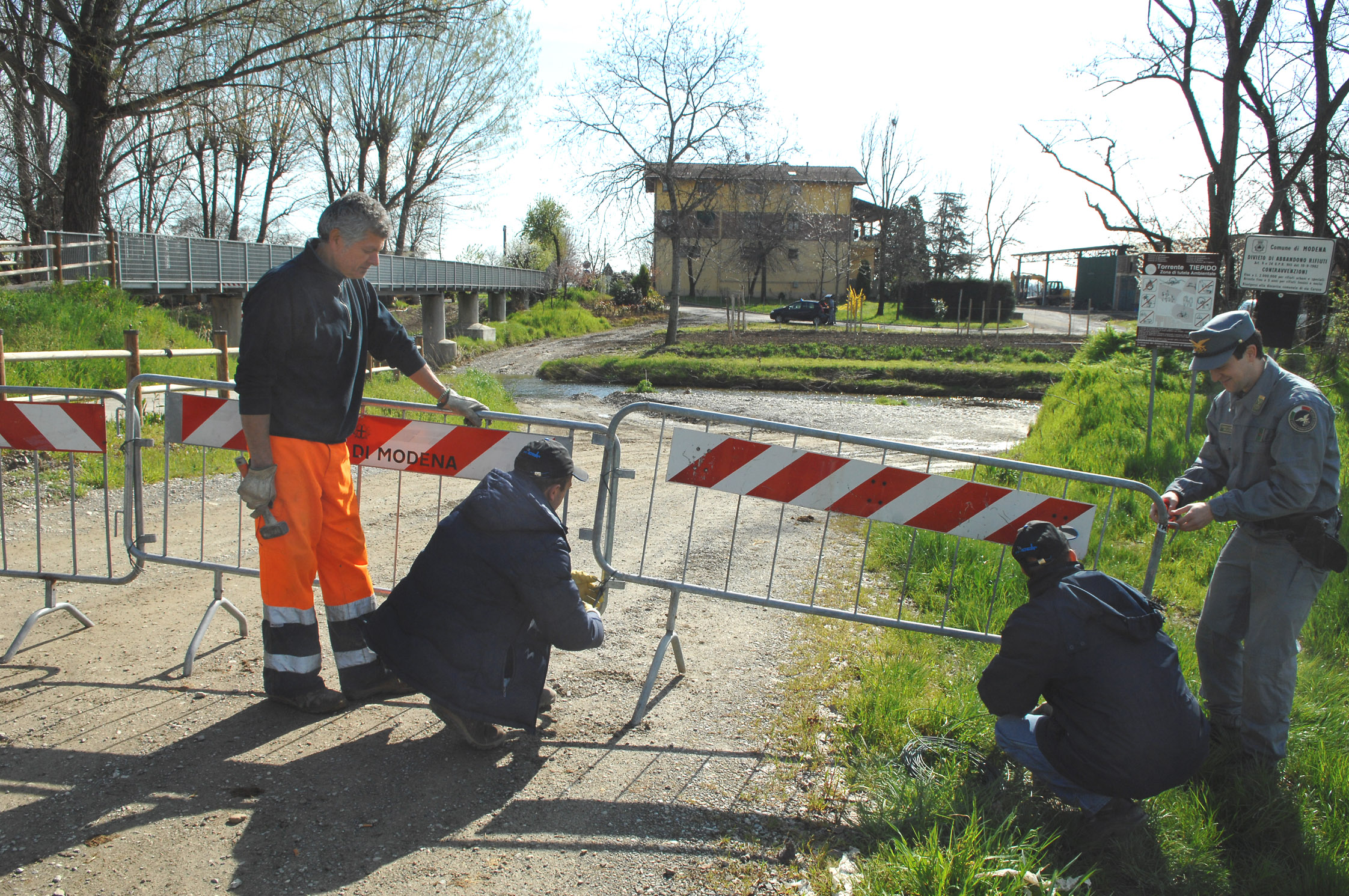 Una squadra di tecnici del Settore manutenzione traffico e logistica del Comune di Modena nella mattina di oggi, martedì 25 marzo, ha transennato e posizionato panettoni in cemento in via Cavidole a Paganine, nei pressi del torrente Tiepido. Qui da tempo erano stati creati due guadi, uno vicino al ponte ciclopedonale e un altro, più a monte, servito da una strada ghiaiosa, che venivano utilizzati abusivamente come scorciatoia tra Castelnuovo Rangone, Portile e la Nuova Estense.