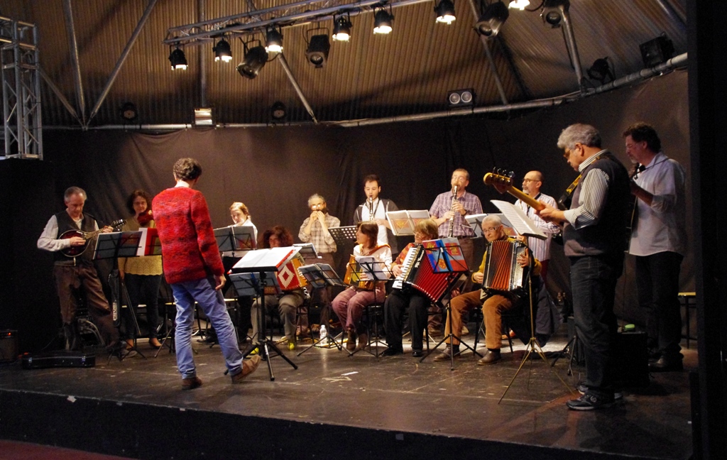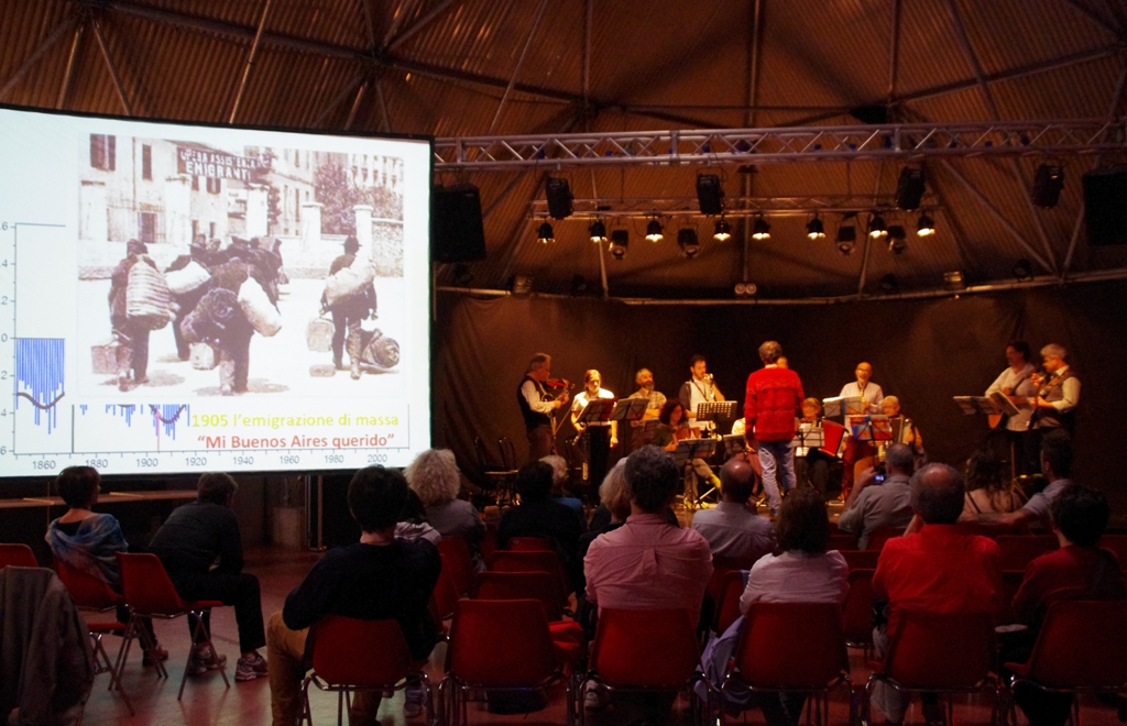 “Una calda atmosfera” è uno spettacolo di musica e parole che introduce i concetti di clima terrestre, effetto serra, gas serra, riscaldamento globale, energie fossili e rinnovabili, efficienza energetica e pratiche di mitigazione e riduzione delle emissioni umane in atmosfera. Il trattamento del tema è affidato a Vittorio Marletto, agrometeorologo esperto che svolge attività divulgativa come blogger (pianetaserra.wordpress.com) e da diversi anni in scuole e circoli. La sua presentazione è intervallata da una serie di pezzi musicali eseguiti con brio e simpatia dall’Orchestra “La Rumorosa”, una compagine popolare nata a Nonantola e attiva dal 2008. I brani musicali dello spettacolo sono inquadrati lungo una falsariga temporale illustrata nel grafico delle temperature globali in aumento. Si eseguiranno, in particolare, “Tesoro mio”, “Procidana”, “Mi Buenos Aires querido” (tango), “Amatola”, “Tre donne belle”, “Valzer di Kiev”, “Il buco” e, in chiusura, “Valzer di mezzanotte”.