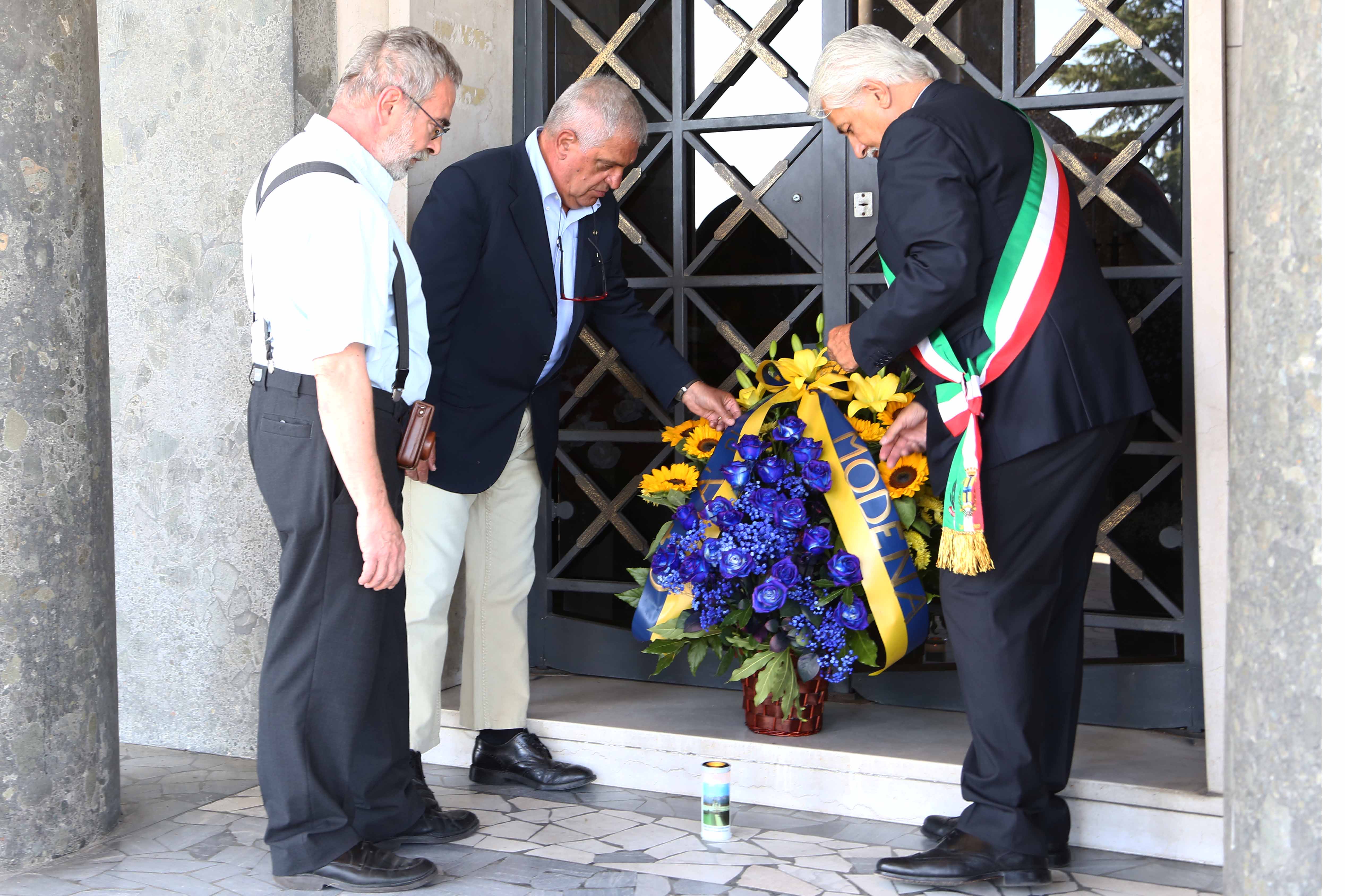 Un omaggio di Modena alla memoria di Enzo Ferrari in occasione dei 26 anni della sua scomparsa avvenuta il 14 agosto del 1988. E’ il significato della breve cerimonia che si è svolta oggi, giovedì 14 agosto, al cimitero cittadino di San Cataldo dove l’assessore Gabriele Giacobazzi, in rappresentanza dell’amministrazione comunale, ha deposto sulla tomba del Drake un cesto di fiori gialli e blu con la scritta “Città di Modena”.