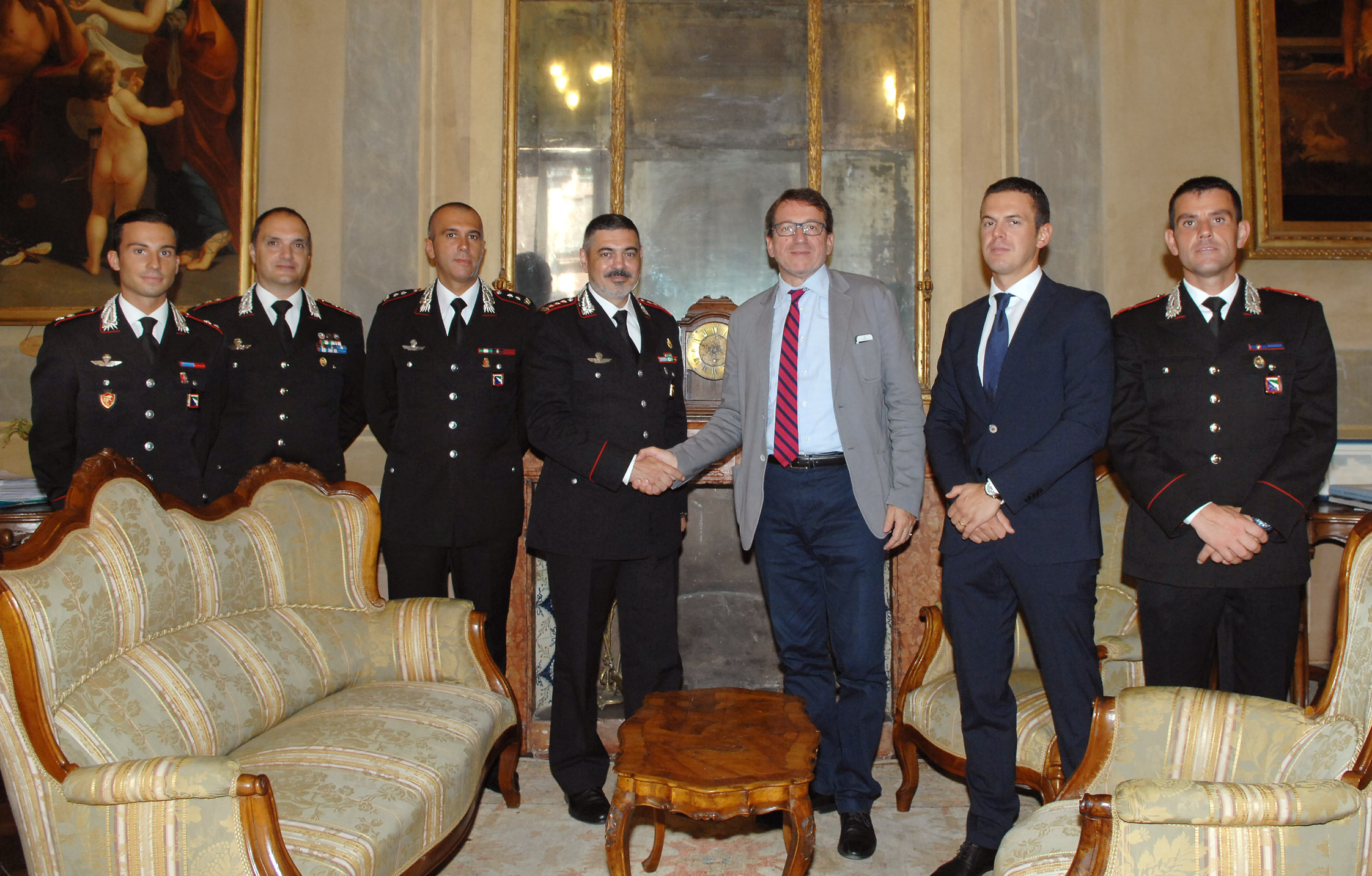 Il sindaco di Modena Gian Carlo Muzzarelli ha ricevuto in Municipio oggi, lunedì 8 settembre, il colonnello Stefano Savo, comandante provinciale dei Carabinieri, per la presentazione dei nuovi ufficiali che vanno a ricoprire importanti ruoli nel comando dell’Arma. Il sindaco ha espresso soddisfazione nel constatare che si è registrato un aumento degli ufficiali in servizio. “E’ un segnale importante in un momento in cui i cittadini chiedono una maggiore presenza delle istituzioni e delle forze dell’ordine sul territorio”.
