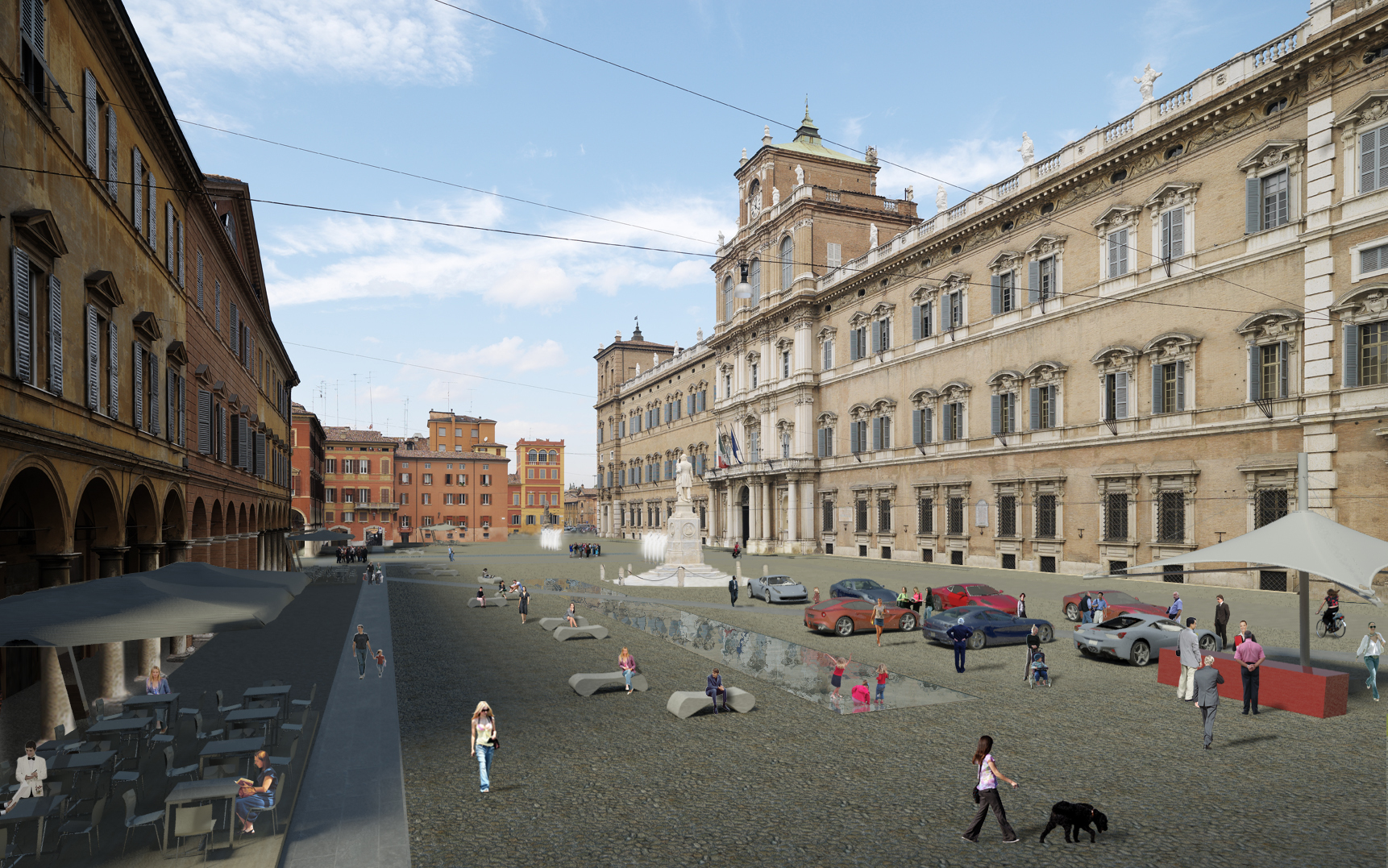 Così come sul fronte dei portici viene ricavata una corsia di sette metri di superficie lastricata, analoga corsia è realizzata anche sul fronte dell’Accademia, dove è previsto il transito dei filobus, ma a maggiore distanza dal Palazzo rispetto a oggi e a bassa velocità, per ridurre gli effetti delle vibrazioni e rendere maggiormente sicuri i passaggi pedonali.