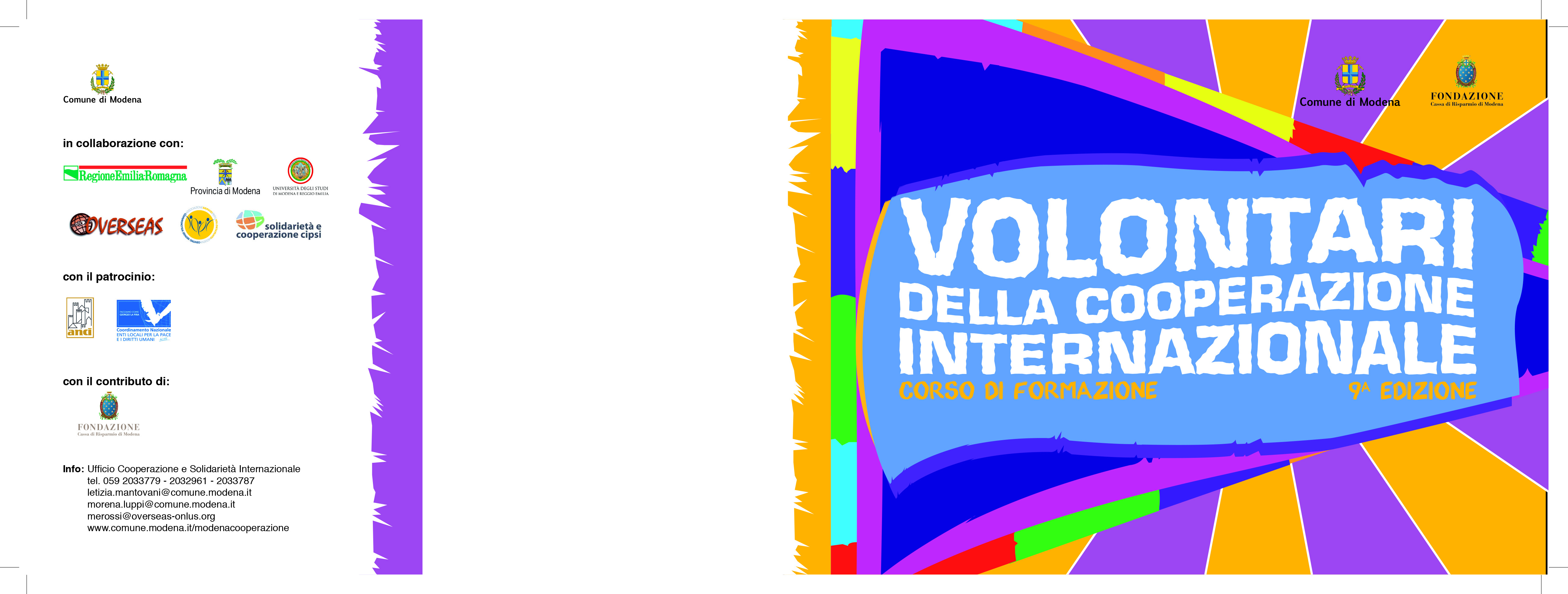 Al via la nona edizione del Corso per volontari della cooperazione internazionale, promosso dal Comune di Modena in collaborazione con Regione Emilia-Romagna, Provincia di Modena, Università degli Studi di Modena e Reggio Emilia, Centro Servizi per il Volontariato, Overseas onlus e Cipsi, grazie al contributo della Fondazione Cassa di Risparmio di Modena e la partecipazione delle associazioni del Tavolo della Cooperazione internazionale.