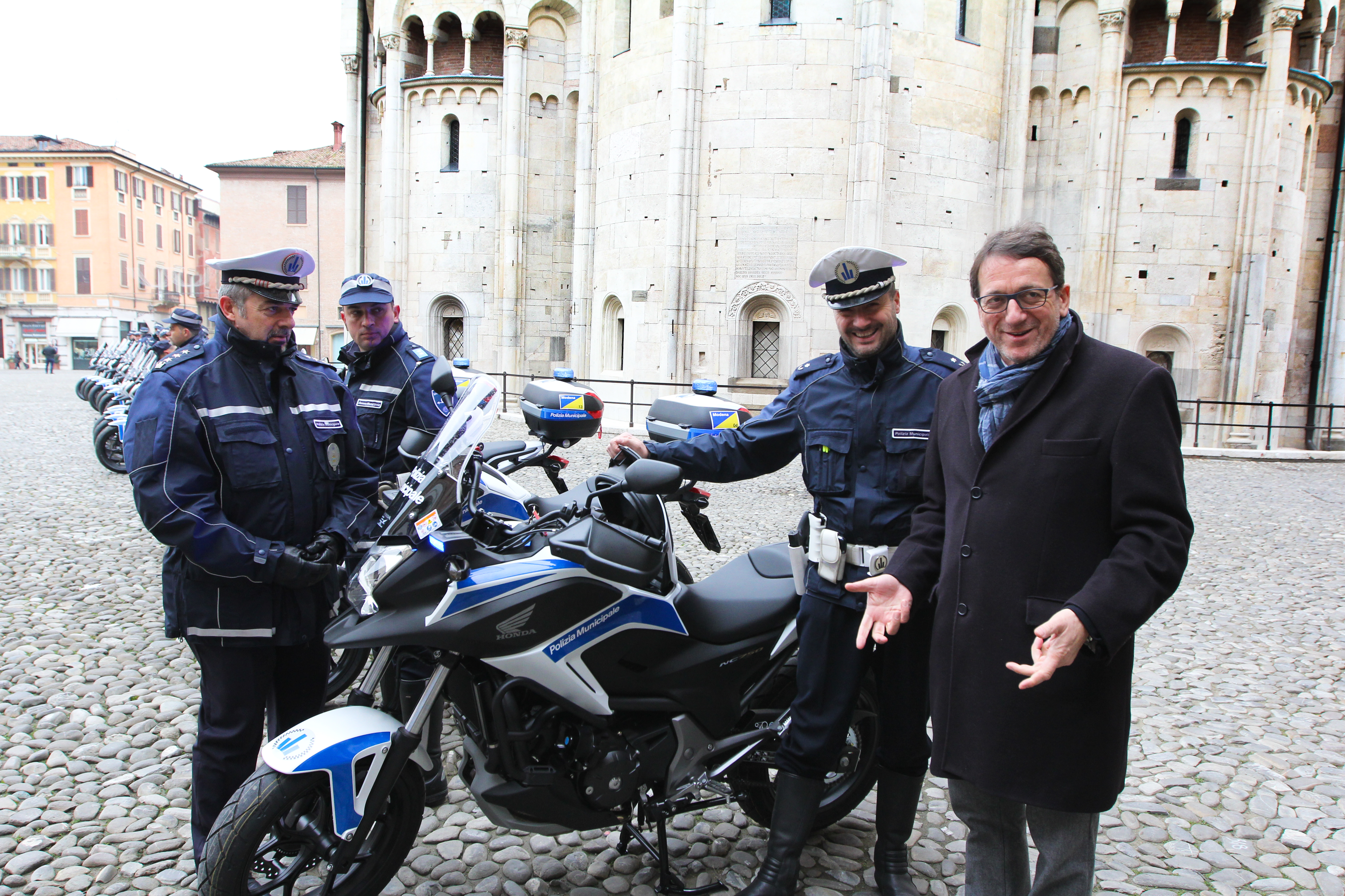È avvenuta questa mattina, venerdì 23 gennaio in piazza Grande la consegna ufficiale del nuovo parco motociclette del Corpo della Polizia Municipale di Modena. Presenti il sindaco Gian Carlo Muzzarelli e il comandante della Municipale Franco Chiari.