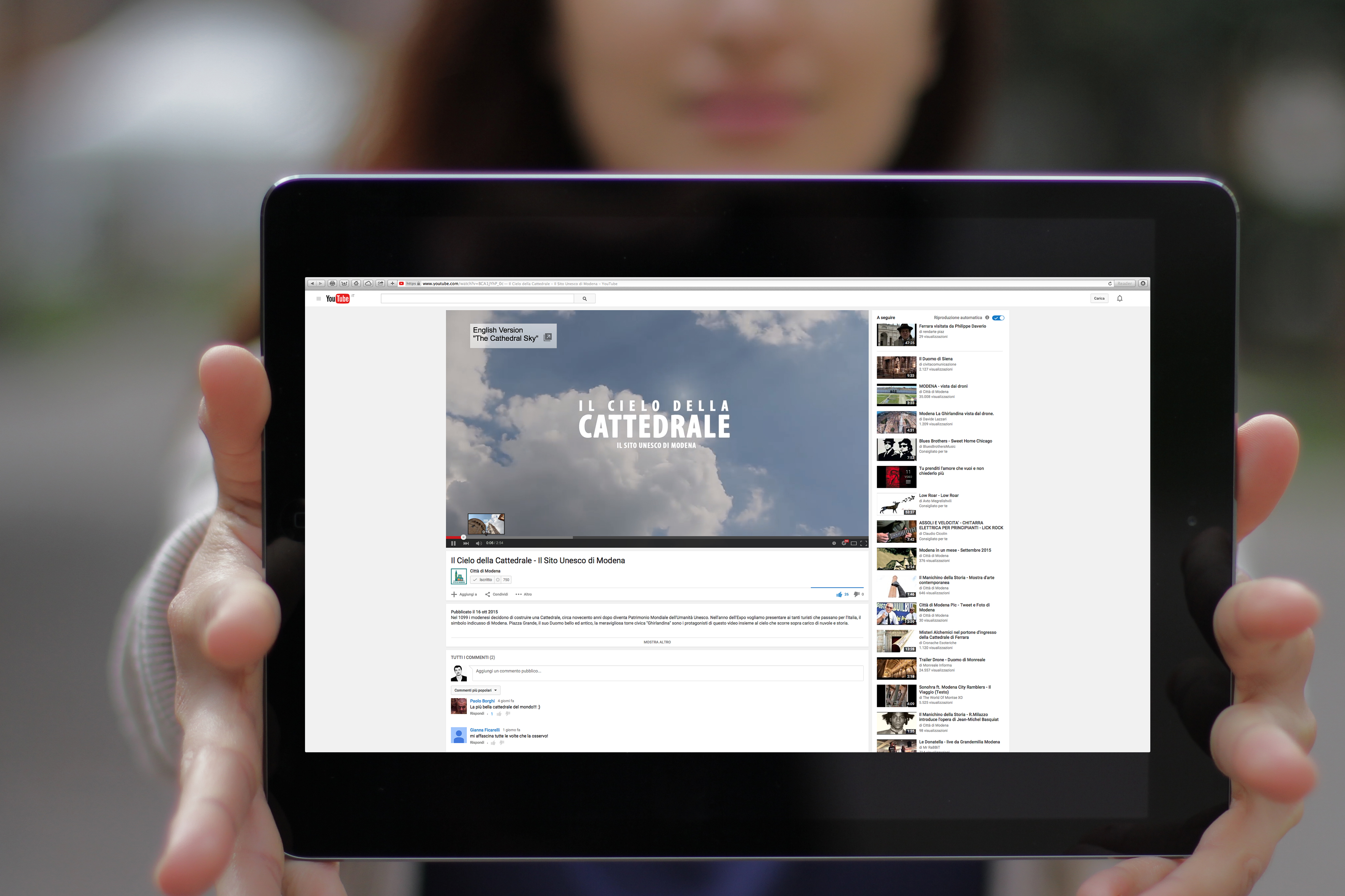 Poco meno di tre minuti di immagini suggestive e brevi testi per descrivere il Duomo di Modena, la Ghirlandina e il Sito Unesco patrimonio dell’Umanità di piazza Grande. Il video per internet “Il cielo della Cattedrale”, realizzato dal Comune, è andato on line sui social network dell’Amministrazione sabato 17 ottobre, quando ne è iniziata anche la proiezione nello stand di Expo Milano 2015 “Modena: dove tutto diventa arte”, in cui la città presenta le sue eccellenze.