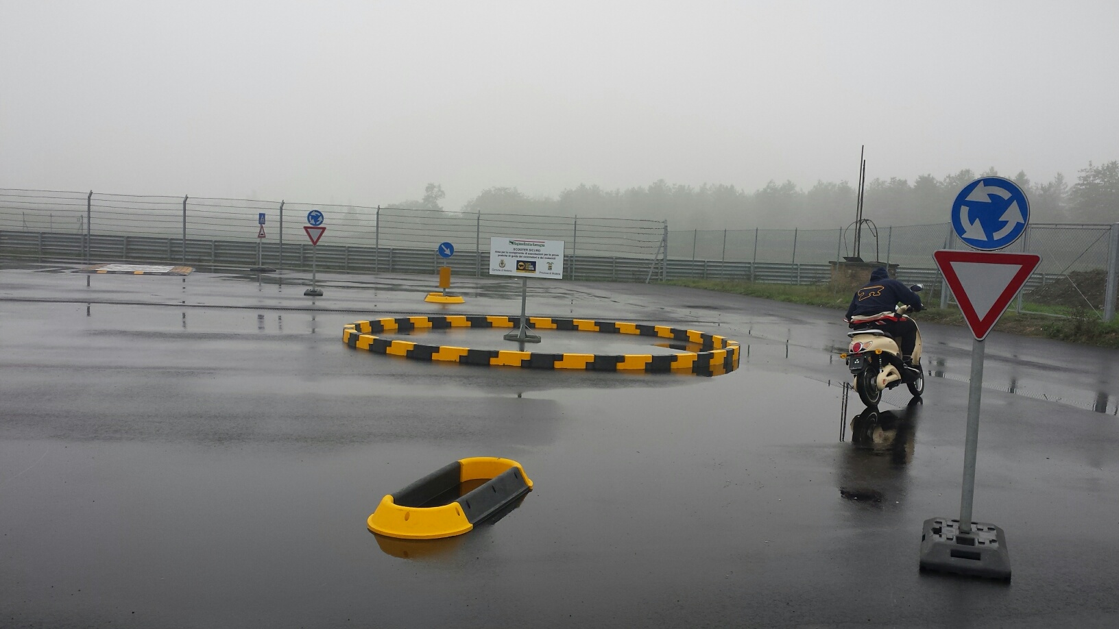 Gli scooter utilizzati sono mezzi elettrici. Il percorso di formazione per veicoli a due ruote prevede un tracciato che può andare dai 400 agli 800 metri e una larghezza costante di 5 metri. Lungo il percorso i giovani motociclisti si troveranno ad avere a che fare con la segnaletica stradale e situazioni che potrebbero dover affrontare in strada. Il campo prova prevede infatti immissione e uscita in una rotonda, stop, semaforo, passaggio pedonale, dosso rallentatore ed è inoltre corredato da una serie di esercizi che prevedono slalom, otto, passaggio stretto e prova di frenata, le stesse previste nella prova pratica per il conseguimento della patente di categoria AM che dal 2013 sostituisce il vecchio Certificato di idoneità alla guida del ciclomotore, il cosiddetto patentino. Occorre aver compiuto 14 anni per poter conseguire la patente AM che una patente di guida a tutti gli effetti; ai titolari si applicano pertanto tutte le norme previste dal Codice della Strada (dalla sospensione alla decurtazione punti).