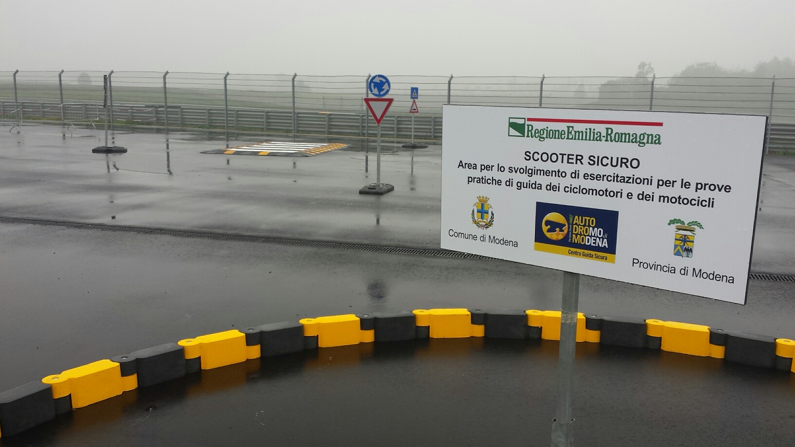 Un tracciato fino a 800 metri di lunghezza che simula diverse situazioni in cui si può incorrere percorrendo le strade alla guida di un motociclo: dallo stop al dosso rallentatore, dal passaggio stretto alla frenata. Lo spazio attrezzato è stato allestito grazie al progetto Scooter sicuro finanziato dalla Regione Emilia Romagna, a cui collaborano anche Comune e Provincia di Modena, nell’ambito delle azioni per la promozione della Sicurezza stradale, che hanno individuato l’area adatta allo scopo nell’Autodromo di Marzaglia. L’obiettivo è promuovere e sviluppare azioni che accrescano la cultura della sicurezza stradale e dell’educazione ad una mobilità sicura nei giovani.