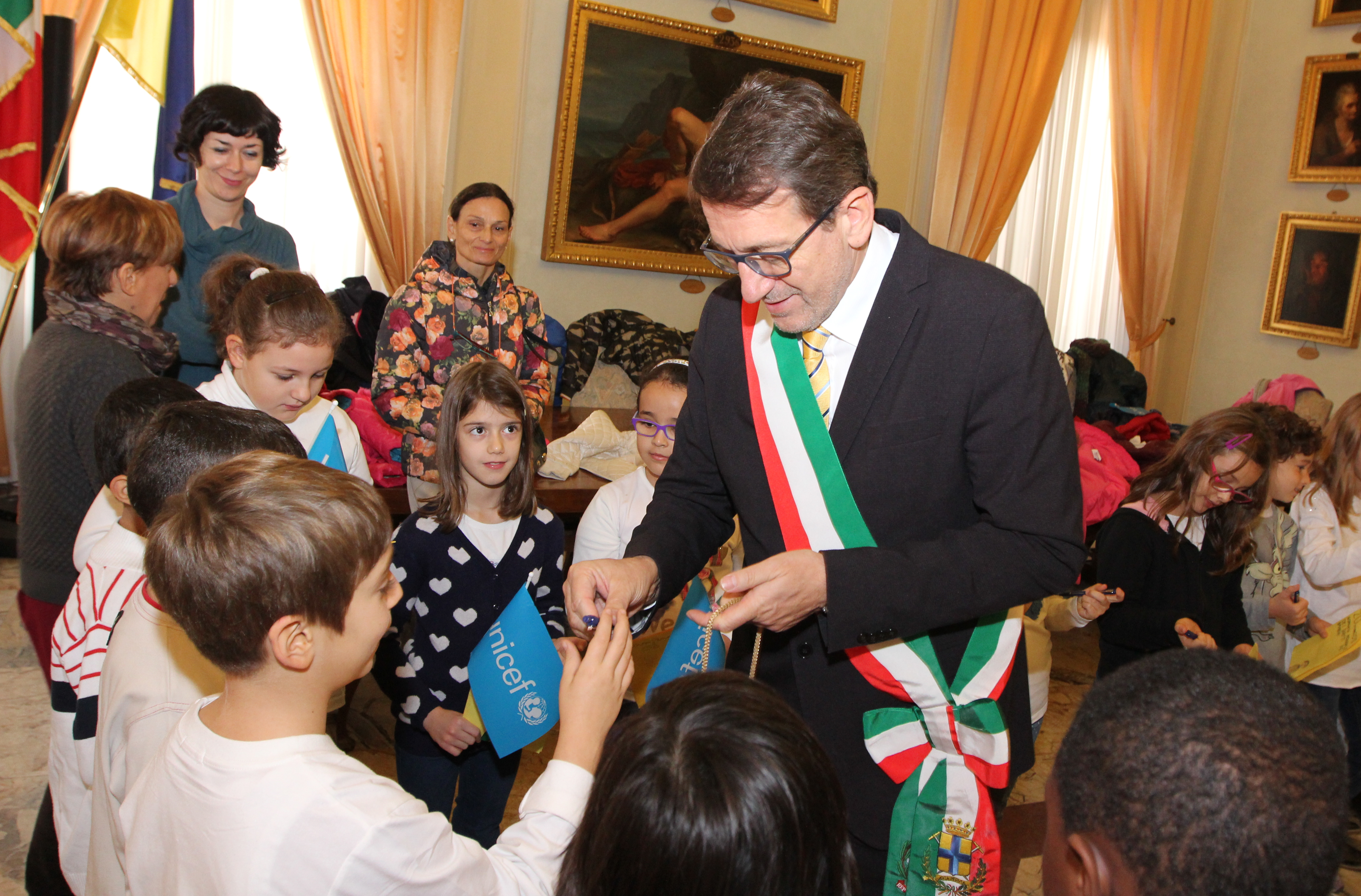 Ad accompagnare i bambini sono state le insegnanti Roberta Zanni, Giusy Ponzetta, Franca Maria Mete, Lara Bizzarri, la responsabile del Sognalibro Iva Tomello e, in rappresentanza dell’Unicef, Marika Porelli che si è fatta portavoce della necessità di “investire nell’assistenza, nell’educazione, nell’istruzione e in una parola, nell’integrazione piena, di tutti i bambini e in particolare delle nuove generazioni nate da famiglie migranti, che più rischiano di essere oggetto di speculazioni, anche ideologiche”.