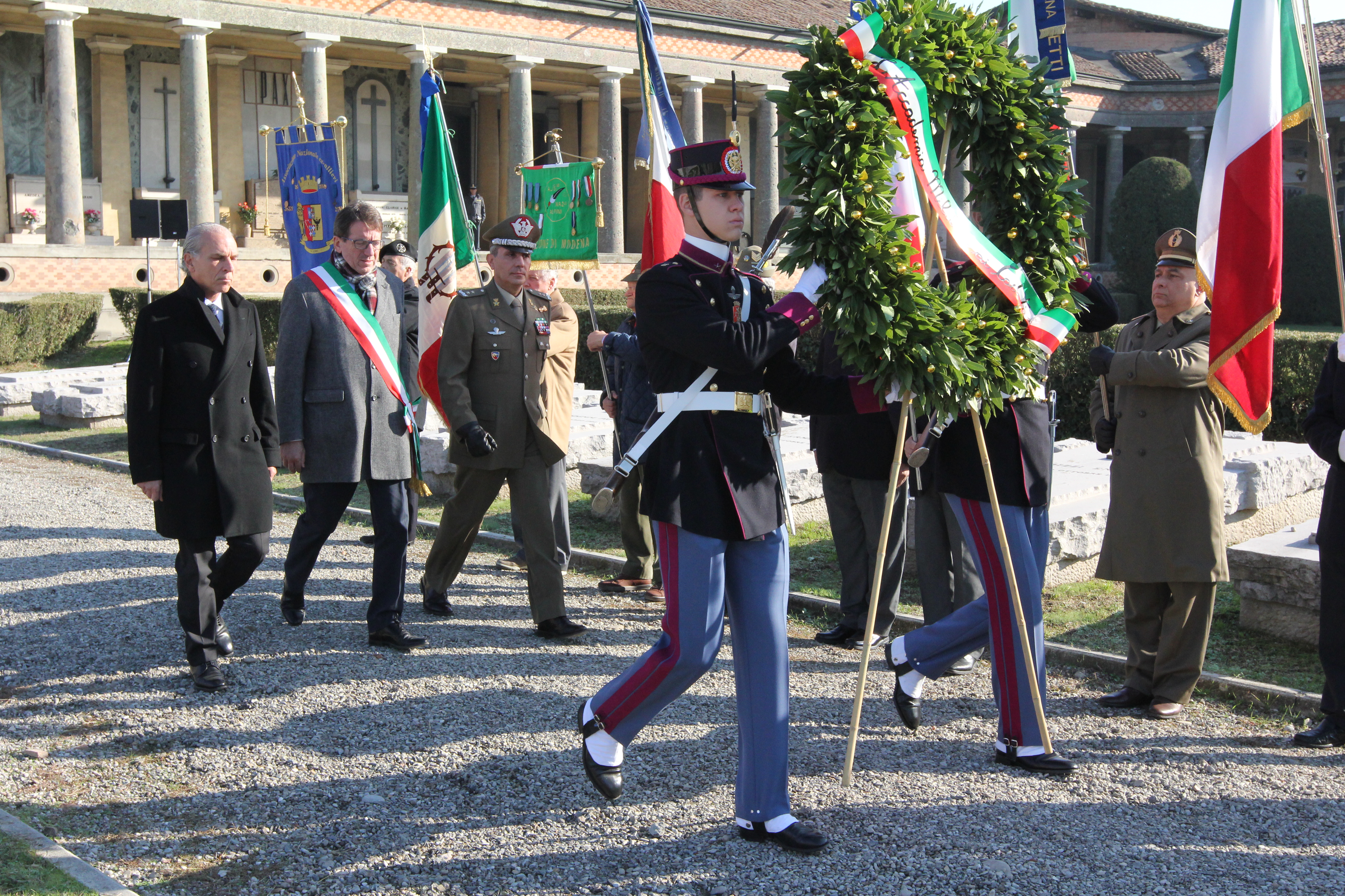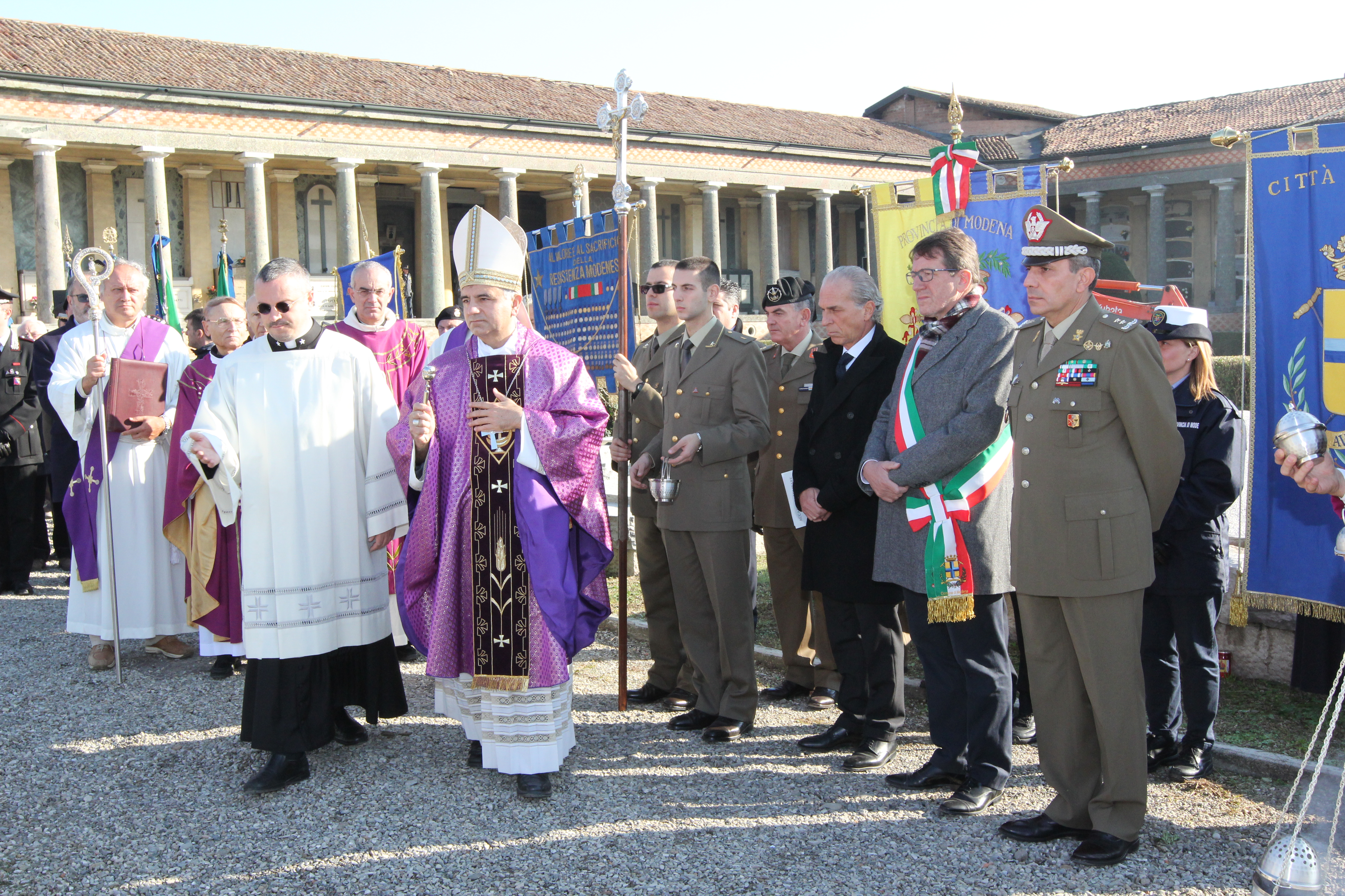 Dopo la messa a suffragio dei defunti e dei caduti di tutte le guerre, celebrata dall’Arcivescovo di Modena – Nonantola mons Erio Castellucci, la cerimonia è proseguita con lo schieramento del Picchetto di allievi ufficiali dell’Accademia militare di Modena e l’omaggio ai caduti con l’accensione di lampade votive e la deposizione di una corona e di mazzi di fiori. Infine, il vescovo ha benedetto i Sacelli dei caduti dell’Accademia militare, della Guerra di Liberazione, del Presidio militare e della guerra 1940-45.
