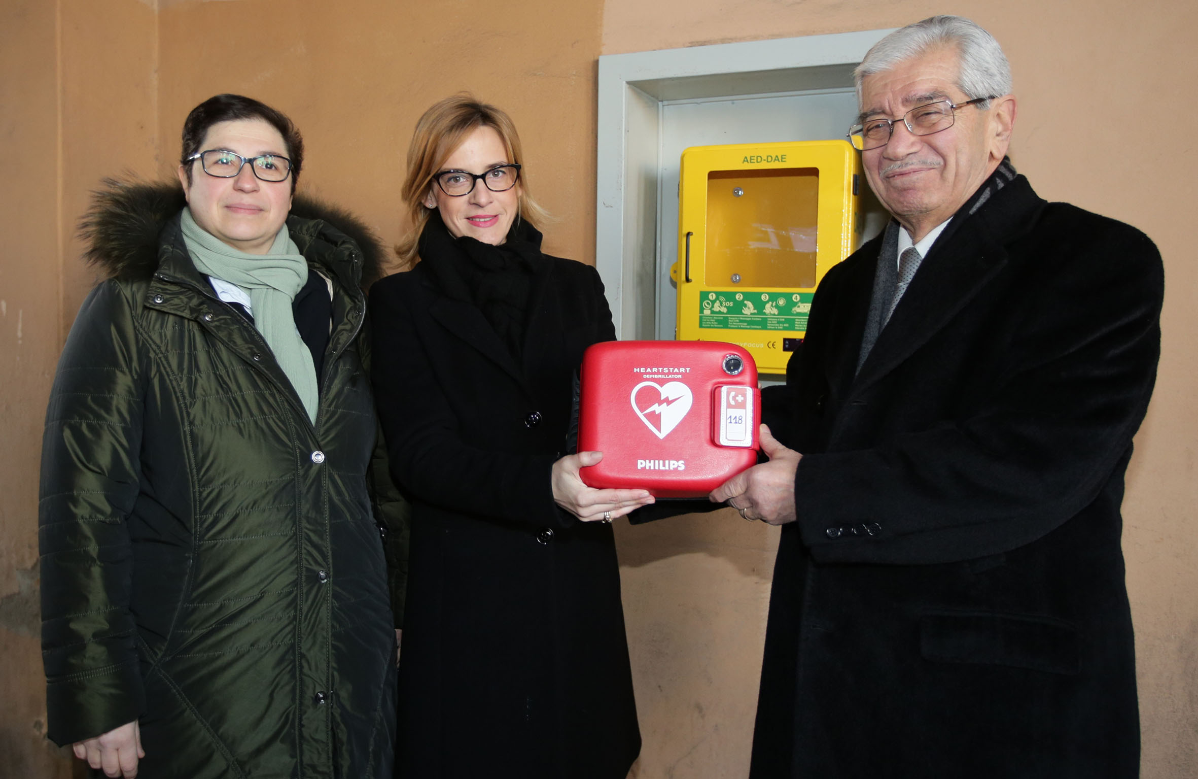 Il nuovo defibrillatore è stato collocato sotto i portici di piazza Grande, in una nicchia allarmata a sinistra dell’ingresso del Municipio e presenta caratteristiche particolarmente innovative anche dal punto di vista tecnologico sanitario. L’apertura dello sportello che chiude la teca dove è custodito l’apparecchio fa scattare una chiamata automatica per il 118 con l’invio di ambulanza sul posto. Lo strumento, inoltre, è bivalente. Con il semplice spostamento di una chiavetta si può utilizzare sia per bambini al di sotto di 8 anni di età, sia per adulti. La teca che custodisce il defibrillatore, infine, garantisce isotermia, ovvero mantiene una temperatura utile per conservare nelle migliori condizioni l’apparecchio anche se la temperatura esterna dovesse essere particolarmente calda o fredda.