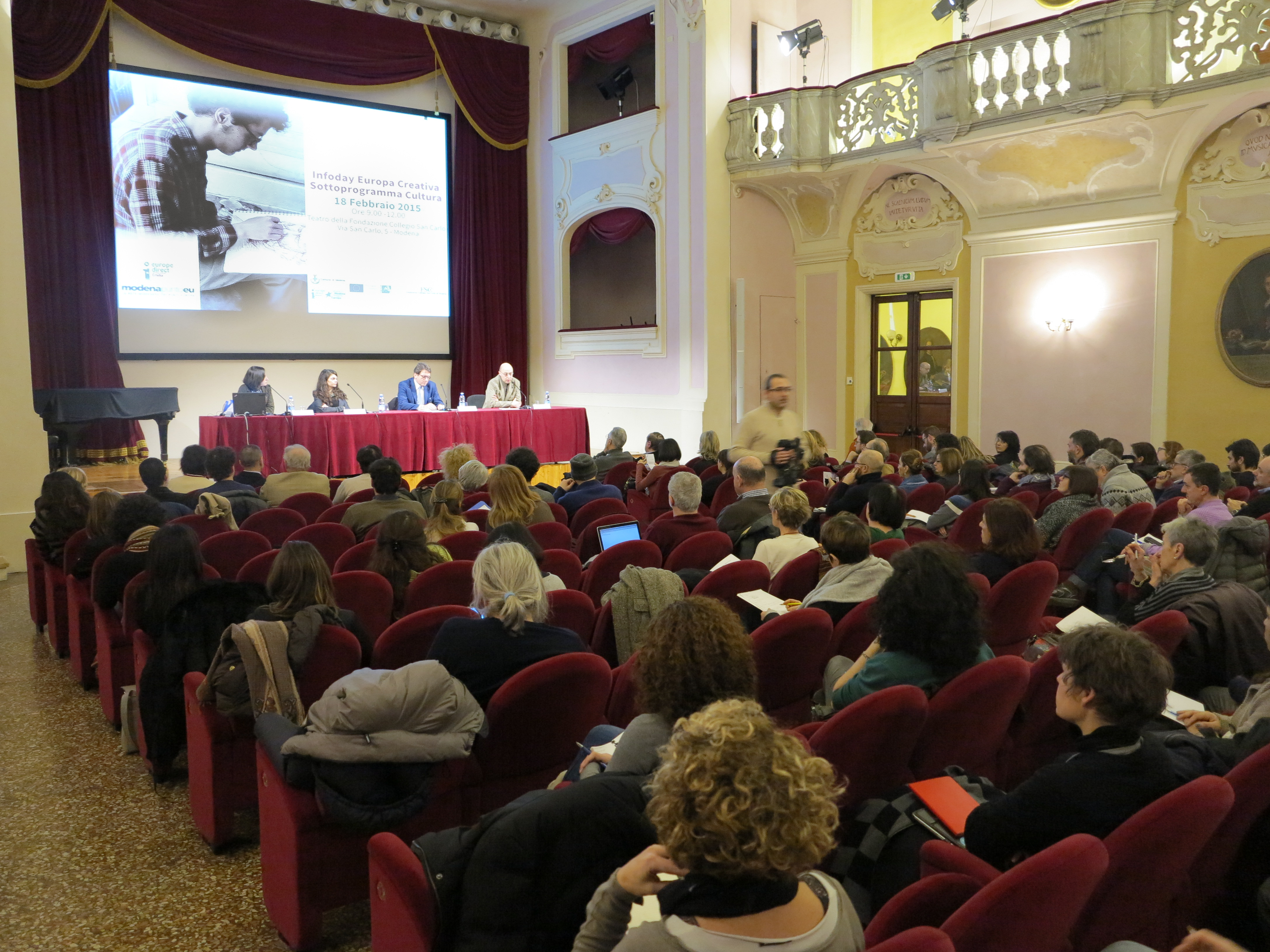 Europa Creativa, e in particolare il sottoprogramma Cultura, è lo strumento che finanzia interventi e progetti di valorizzazione del patrimonio culturale materiale e immateriale, oltre che tutte le forme artistiche e ogni forma di creatività. L’info day, organizzato dall’Ufficio Politiche europee e Relazioni internazionali del Comune di Modena in collaborazione con Creative Europe Desk Italia del Mibac, si è svolto nella mattinata di mercoledì 18 febbraio al teatro della Fondazione San Carlo, davanti a una platea di oltre 150 tra rappresentanti di associazioni, enti, istituzioni, fondazioni, imprese e soggetti pubblici e privati attivi in ambito culturale. A loro si è rivolto il sindaco: “Il nostro territorio è ricco di istituti culturali pubblici e privati e di imprese creative, spesso gestite da giovani, che potrebbero trovare in Europa Creativa un sostegno alla realizzazione di attività sempre più qualificate, di livello, costruite in partenariato con attori di altri Paesi europei in una dimensione di cooperazione transnazionale”. E per quanto riguarda i progetti realizzati sul territorio anche grazie i fondi europei, Muzzarelli ha ricordato il Parco archeologico di Montale nato con un progetto europeo cofinanziato dal programma Raffaello e i successivi progetti di valorizzazione del Parco cofinanziati dai programmi europei Cultura 2000 e Cultura 2007-2013. “Per noi l’Europa è stata una risorsa – ha continuato il sindaco - poiché ci ha permesso non solo di sostenere il nostro patrimonio, ma anche di favorire l’inserimento dei Musei Civici in reti internazionali che lavorano per la promozione del territorio anche in chiave turistica”.