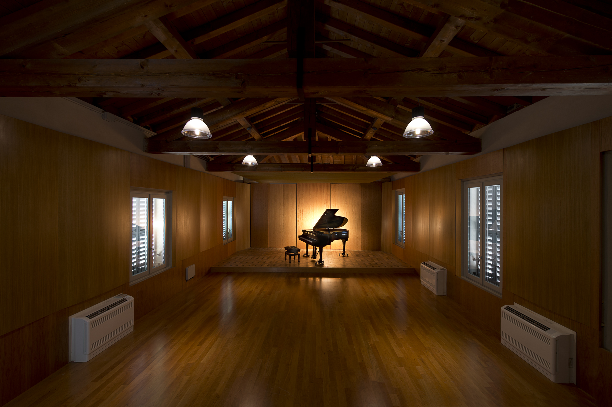L’auditorium che può ospitare fino a sessanta persone, è stato oggetto di un intervento di progettazione acustica di eccellenza per l'esecuzione musicale e vocale. La volta con capriate in legno a vista, le pareti rivestite da pannellature lignee con curvature riflettenti e la pedana con una speciale conchiglia acustica variabile, fanno della sala una cassa armonica in grado di valorizzare e controllare i suoni rispondendo alle esigenze dei musicisti e del pubblico vibrando con le sue frequenze e la sua energia.