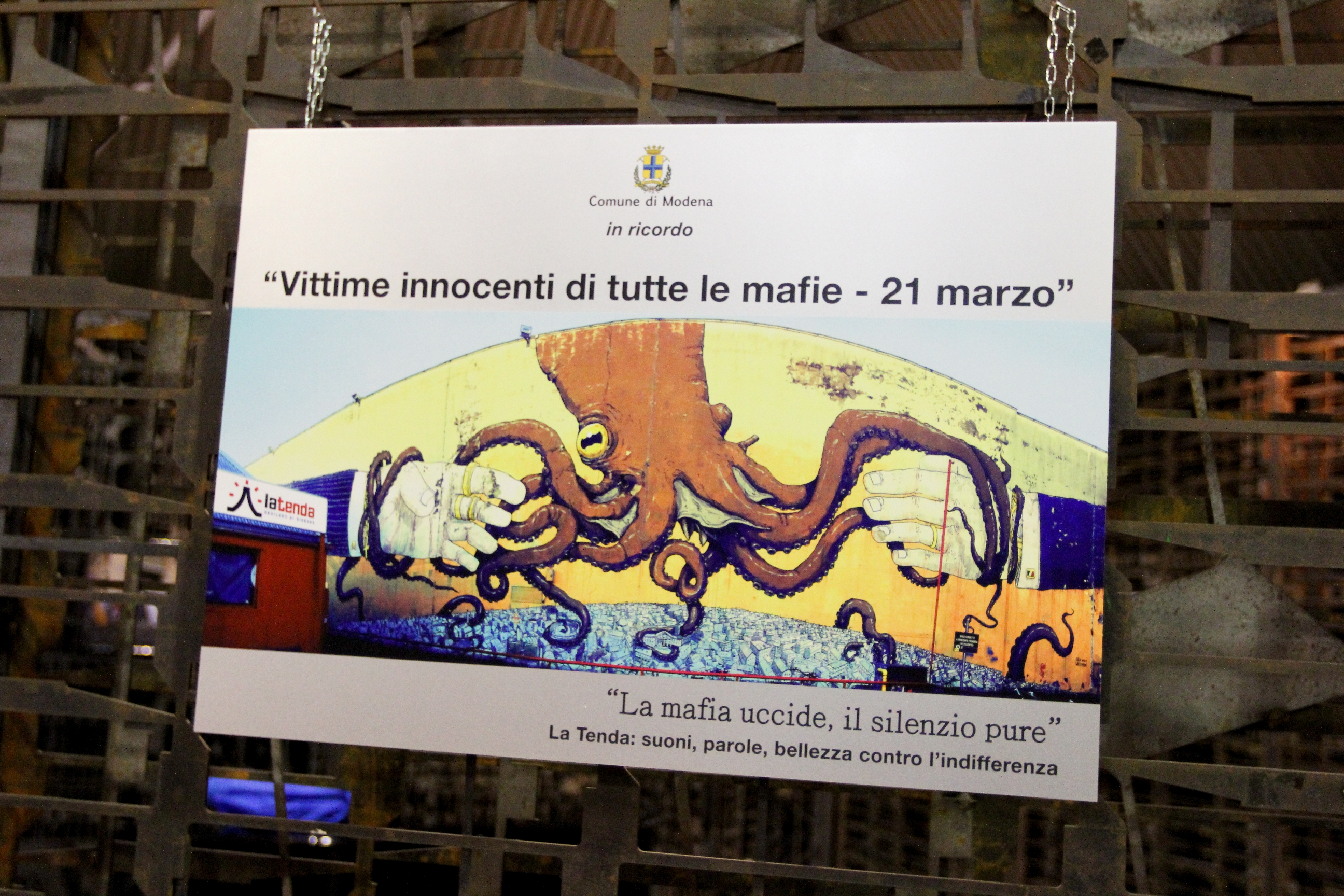 La Tenda, la struttura di viale Molza gestita dall’assessorato alle Politiche giovanili del Comune di Modena, è stata intitolata oggi, martedì 3 marzo, alle “Vittime innocenti di tutte le mafie”. Alla cerimonia, durante la quale è stata scoperta la targa che ricorda l’intitolazione, erano presenti il sindaco di Modena Gian Carlo Muzzarelli, l’assessore alle Politiche giovanili Giulio Guerzoni, il giudice Antonino Di Matteo e don Ciotti. Ha partecipato anche una classe di studenti del Corni.