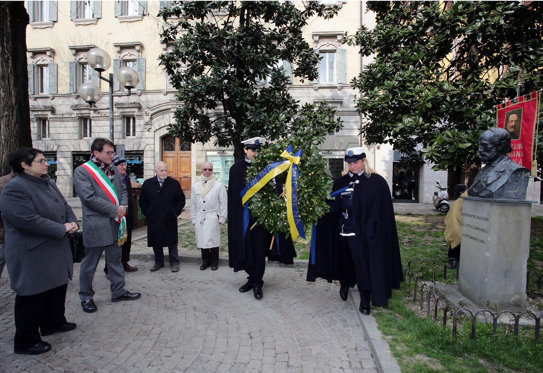 Una corona d'alloro per ricordare la morte di Giuseppe Mazzini, avvenuta il 10 marzo 1872. L'ha deposta oggi, domenica 15 marzo, il sindaco di Modena Gian Carlo Muzzarelli, insieme alla presidente del Consiglio comunale Francesca Maletti, davanti al busto del patriota che si trova nella piazza del centro cittadino a lui intitolata.La cerimonia si è svolta nell’ambito dell’iniziativa che la sede modenese dell’Associazione Mazziniana Italiana organizza tutti gli anni in occasione della ricorrenza.