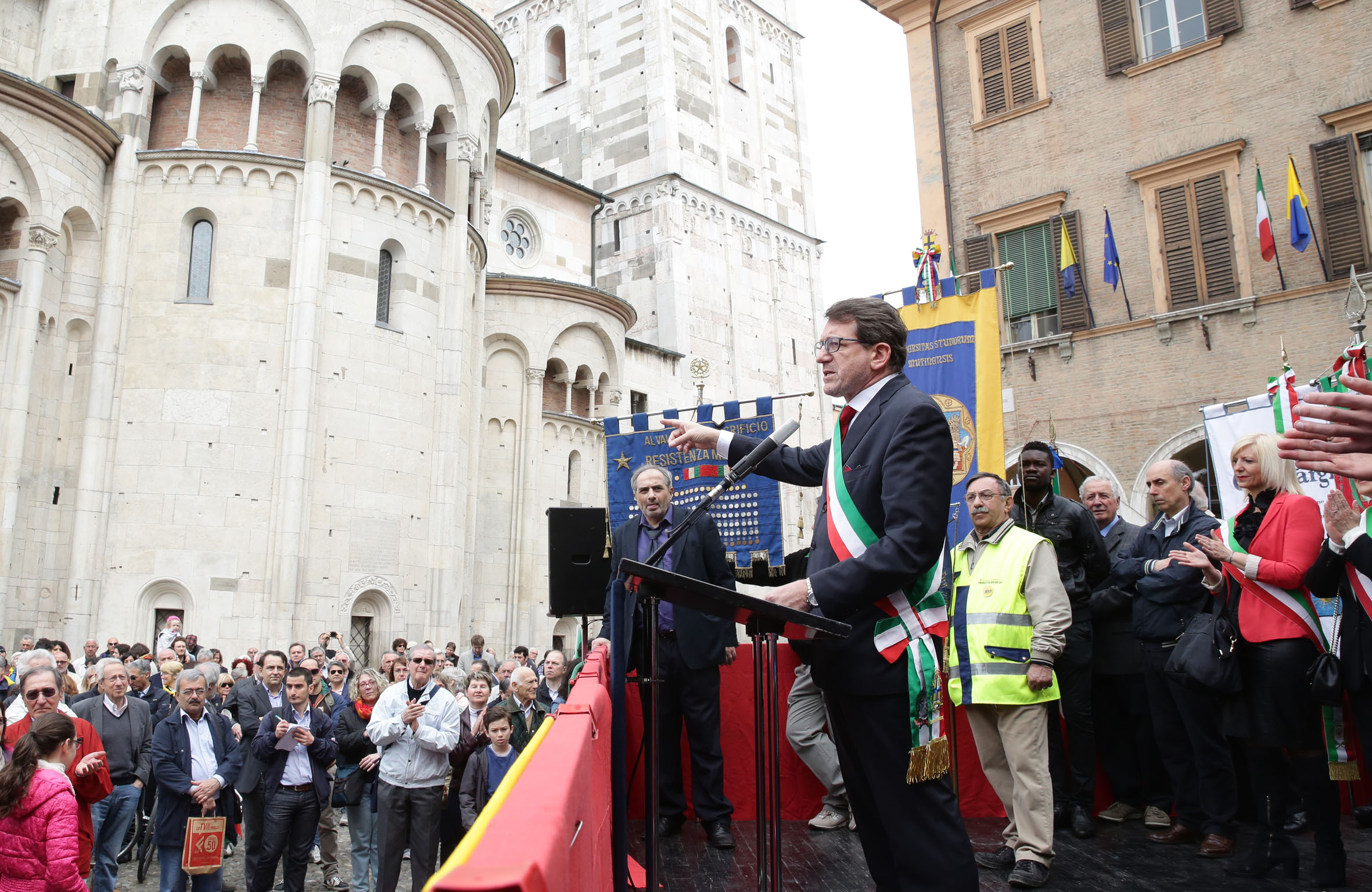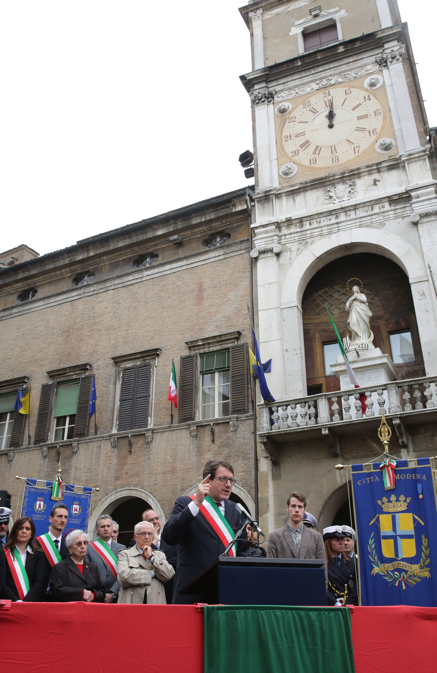 Dopo aver ricordato cosa sono stati il fascismo e la guerra, Muzzarelli ha sottolineato come la Resistenza abbia rappresentato “un grande moto di popolo e di riscatto nazionale, che ci ha permesso di partecipare alla guerra contro il nazifascismo a fianco degli Alleati e di preparare le basi dell’Italia libera e democratica”. Per il sindaco il 25 aprile “è festa della liberazione e festa della libertà”, una parola a cui è necessario dare “un senso concreto e quotidiano” avendo come punto di riferimento la Costituzione.