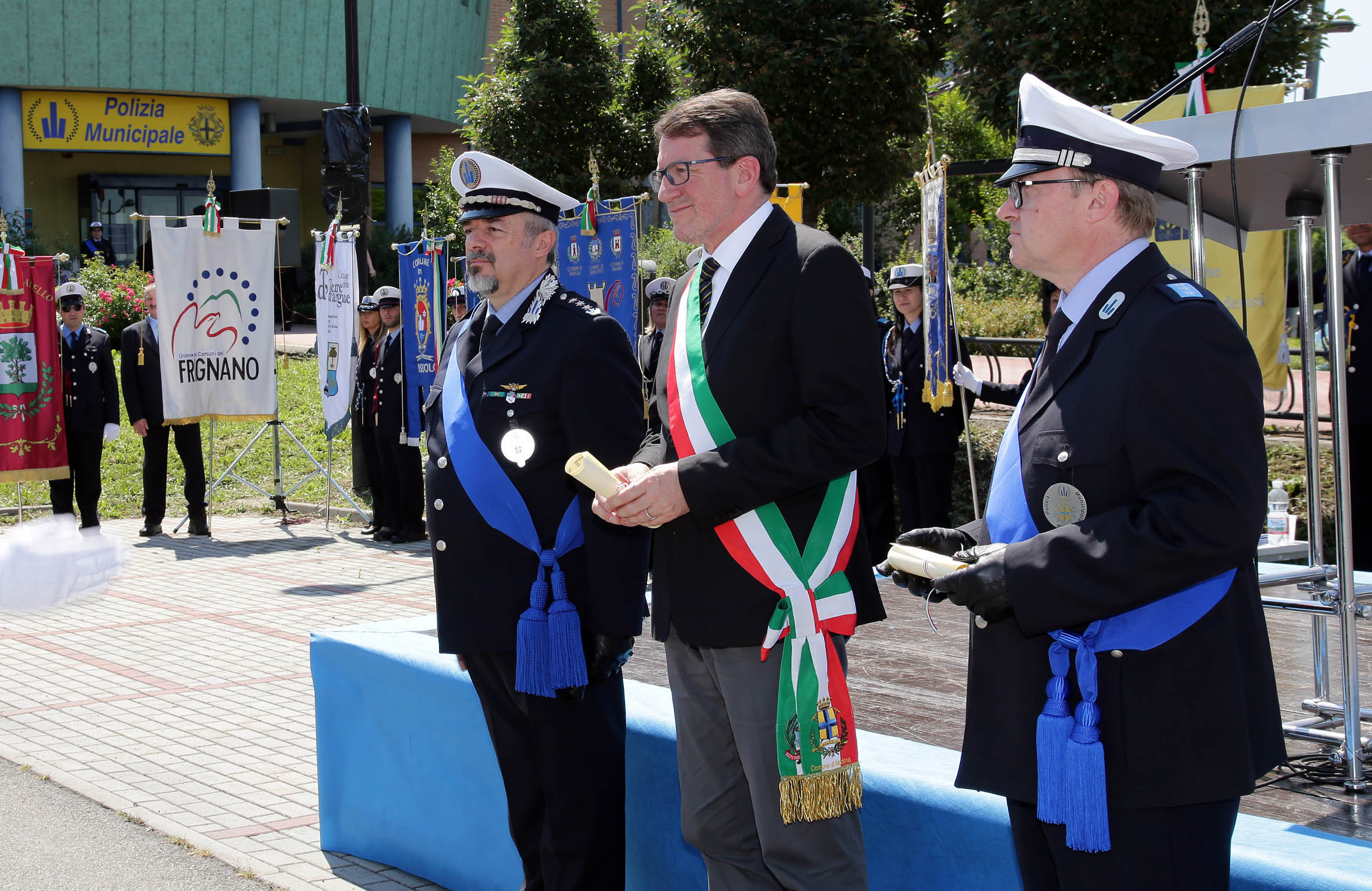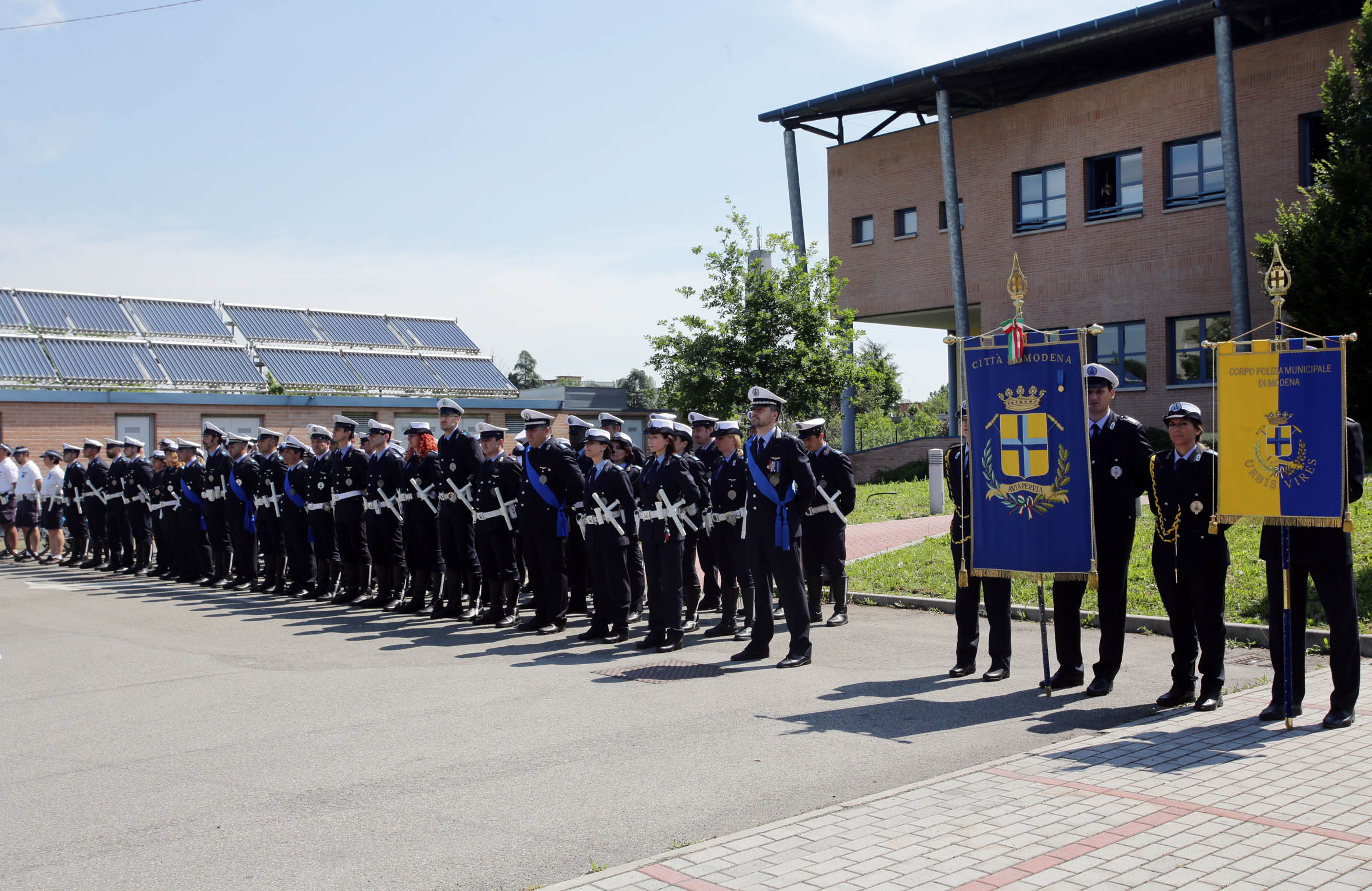 La festa per il 155° anniversario della fondazione del Corpo di Polizia municipale di Modena, che si è svolta oggi lunedì 25 maggio, è stata anche l’occasione per il conferimento dei nuovi gradi al personale che ne ha maturato il titolo e per la consegna degli elogi, da parte del comandante e delle autorità presenti, agli agenti che si sono distinti nel corso dell’ultimo anno.