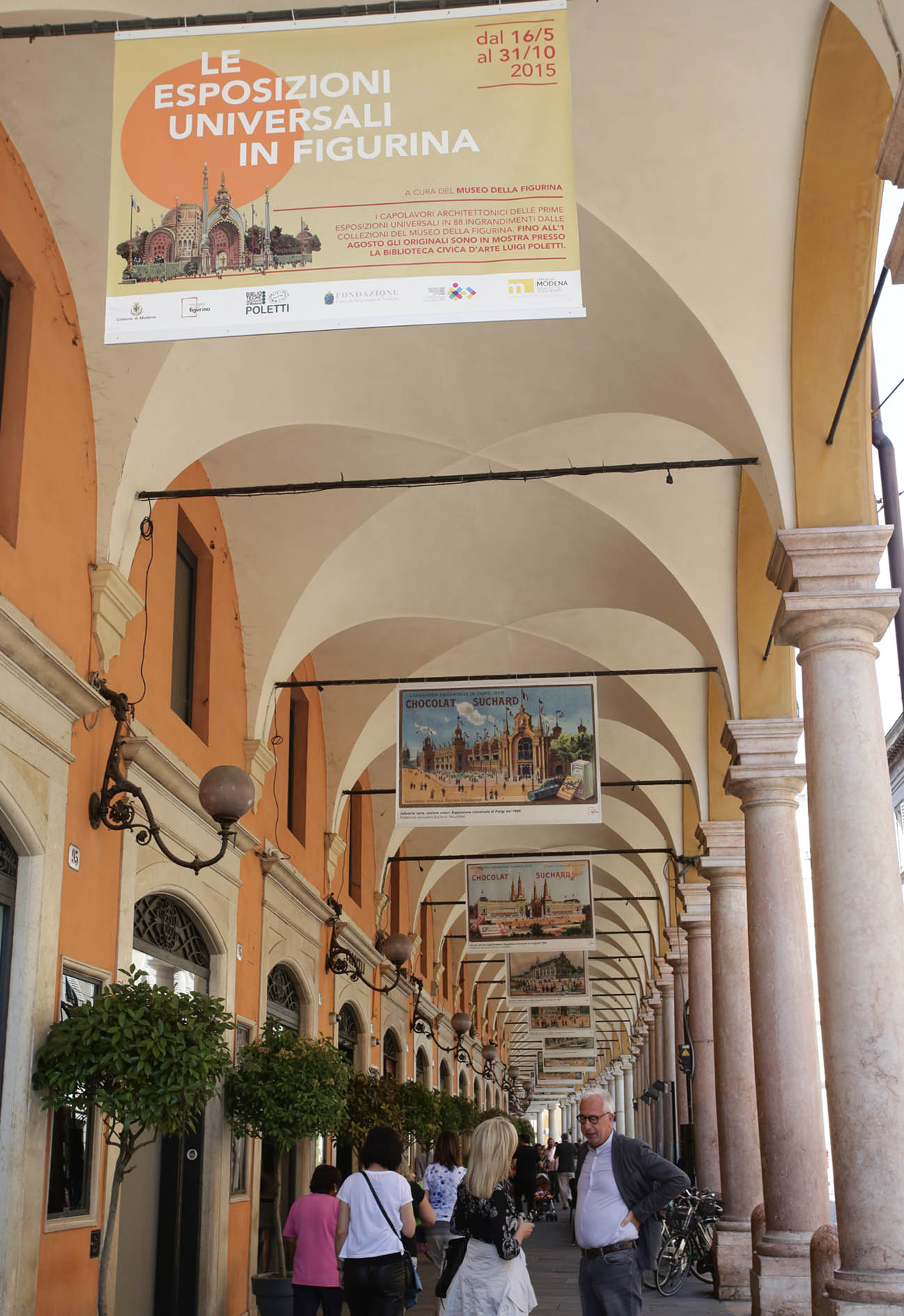 Ottantotto ingrandimenti di figurine dedicate alle Esposizioni Universali: la Parigi del 1867, 1878, 1889, 1900 e Saint Louis del 1904 immortalate in brillanti immagini cromolitografiche. Sono già installate in centro storico e arredano i Portici del Collegio, di piazza Roma, del Comune tra piazzetta delle Ova e piazza Torre. Il percorso “Esposizioni Universali in figurina” sarà inaugurato ufficialmente il 16 maggio in occasione di “Nessun dorma”, la notte bianca modenese, e resterà allestito fino al 31 ottobre 2015.