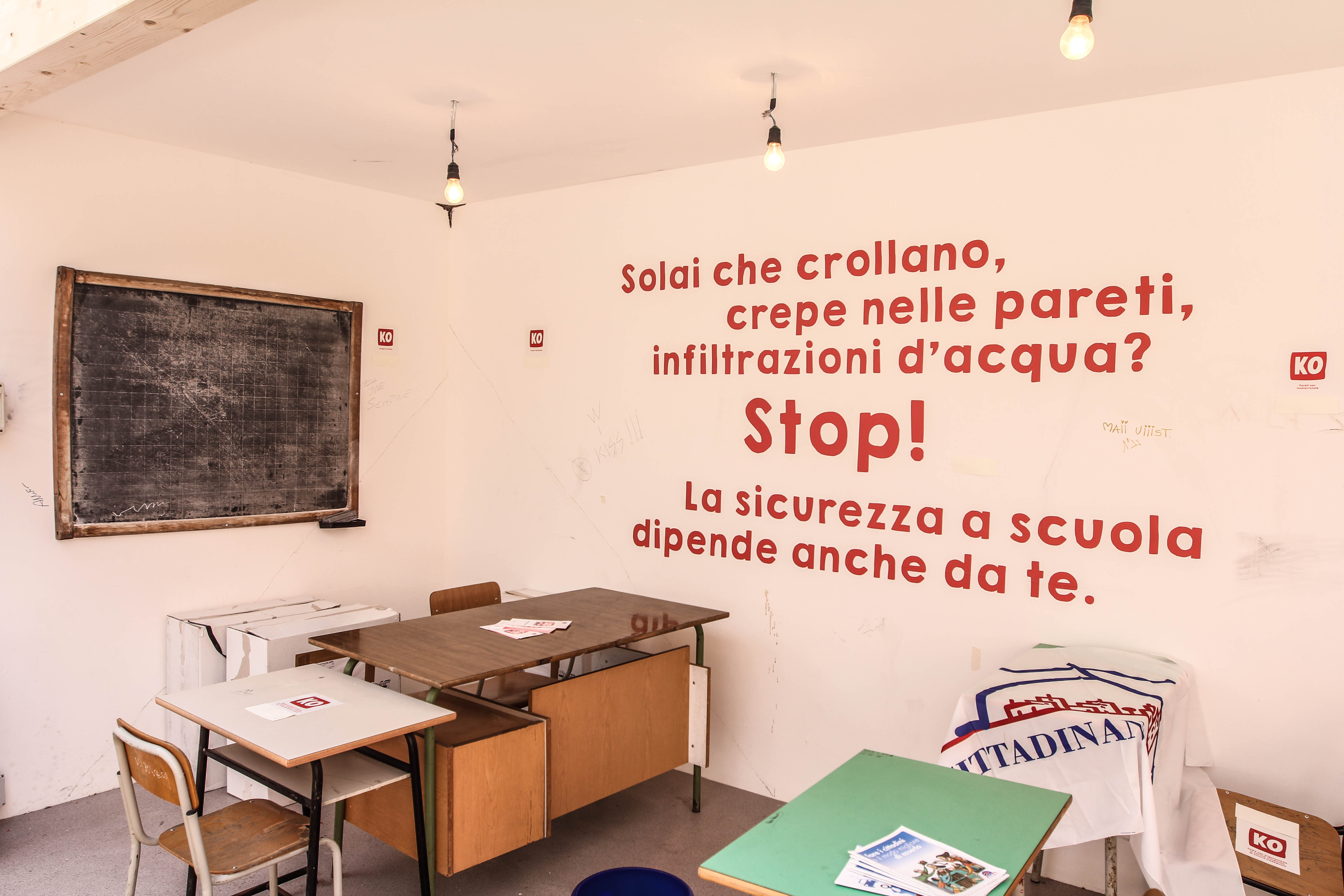In città il progetto è approdato con il patrocinio del Comune di Modena in concomitanza con il terzo anniversario della seconda forte scossa sismica che ha colpito l’Emilia nel 2012, e vi resterà fino al 4 giugno fornendo l’occasione per affrontare temi legati al mondo della scuola anche in riferimento alle carenze strutturali evidenziate dal sisma.