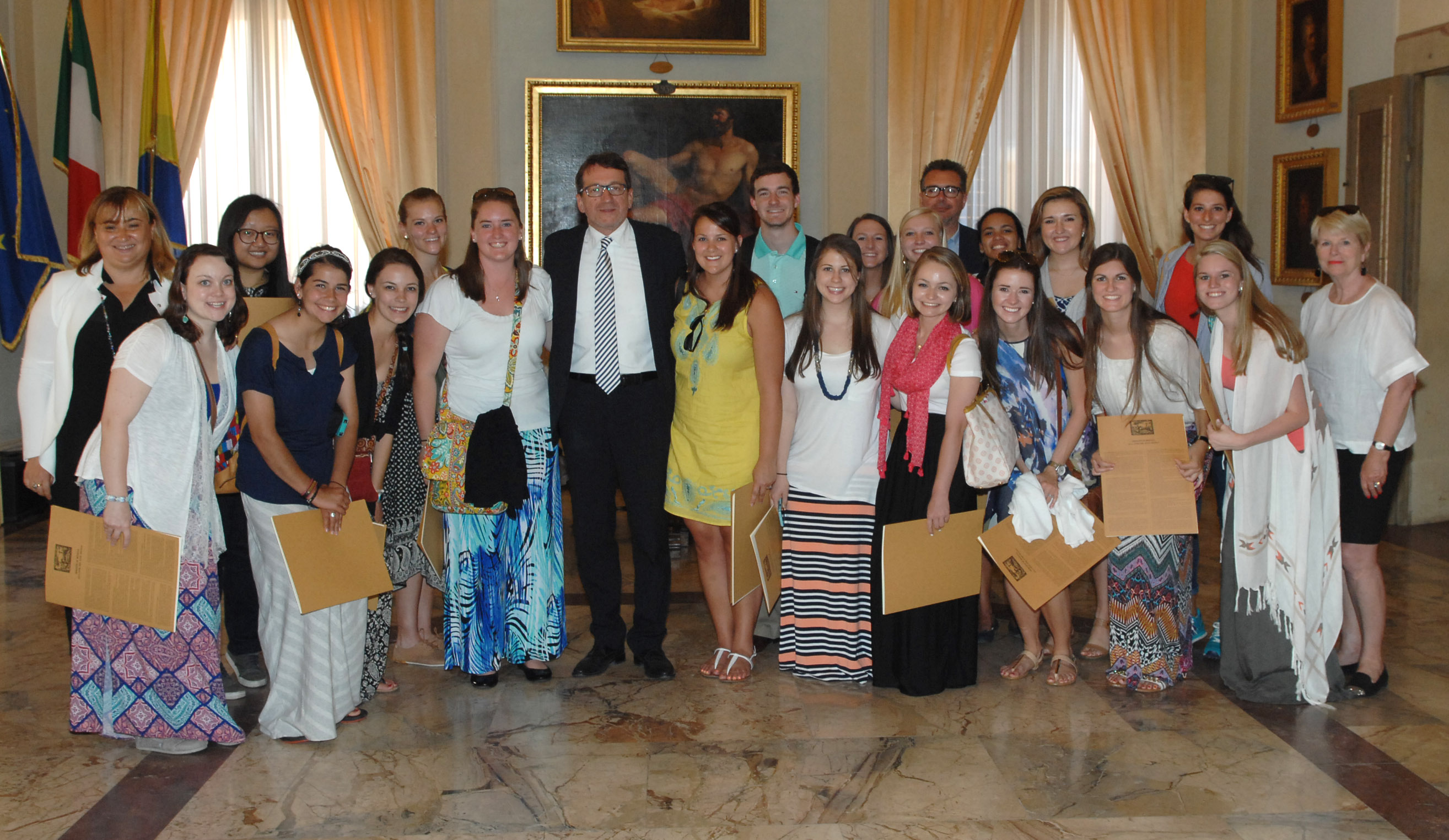 “Spero che Modena possa insegnarvi qualcosa, di certo voi avrete qualcosa da insegnare a noi e insieme cammineremo verso il futuro”. È l’auspicio che il sindaco Gian Carlo Muzzarelli, accompagnato dal vicesindaco assessore alla Scuola Giampietro Cavazza, ha rivolto al gruppo di universitari americani incontrati questo pomeriggio in Municipio.