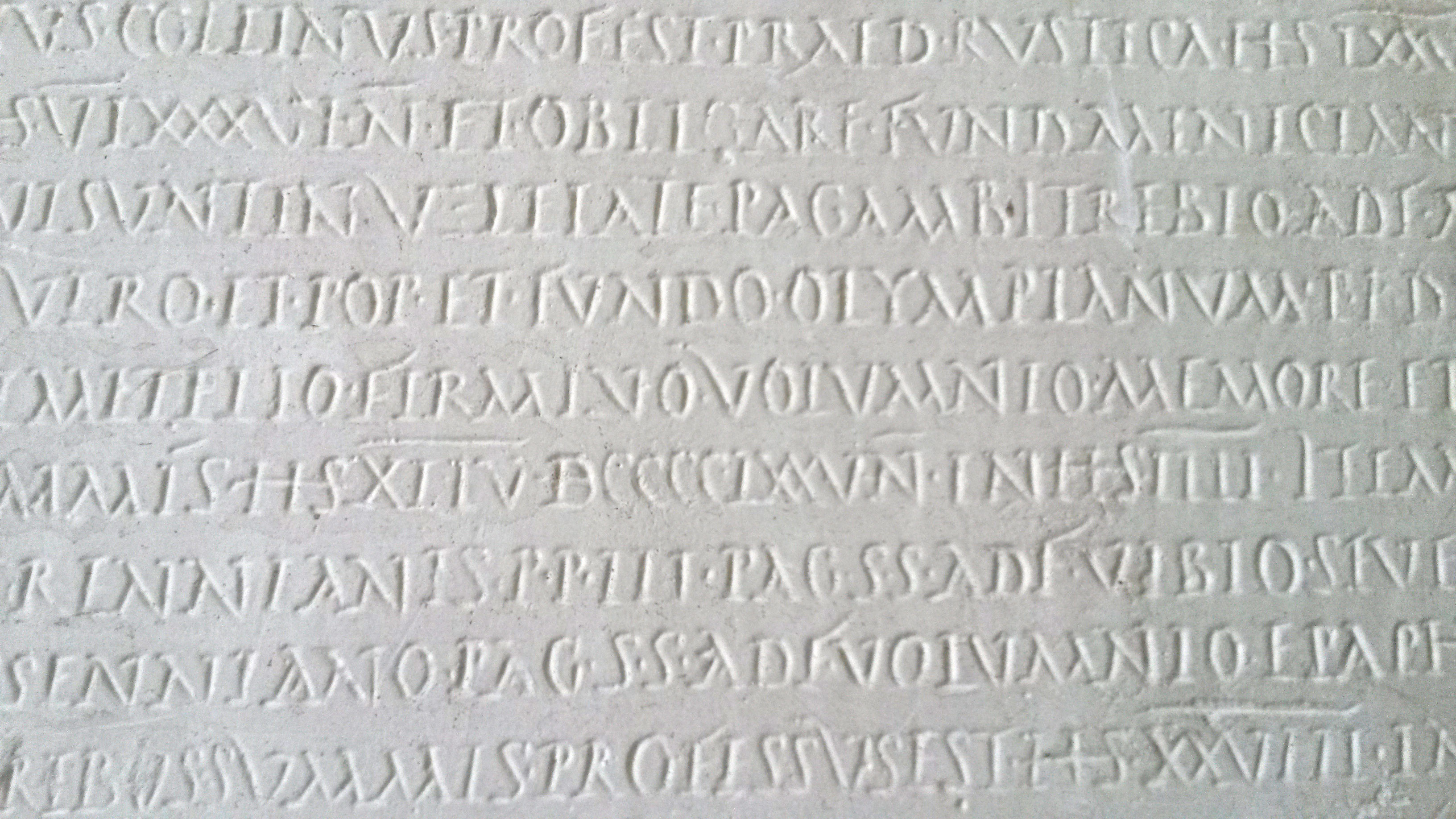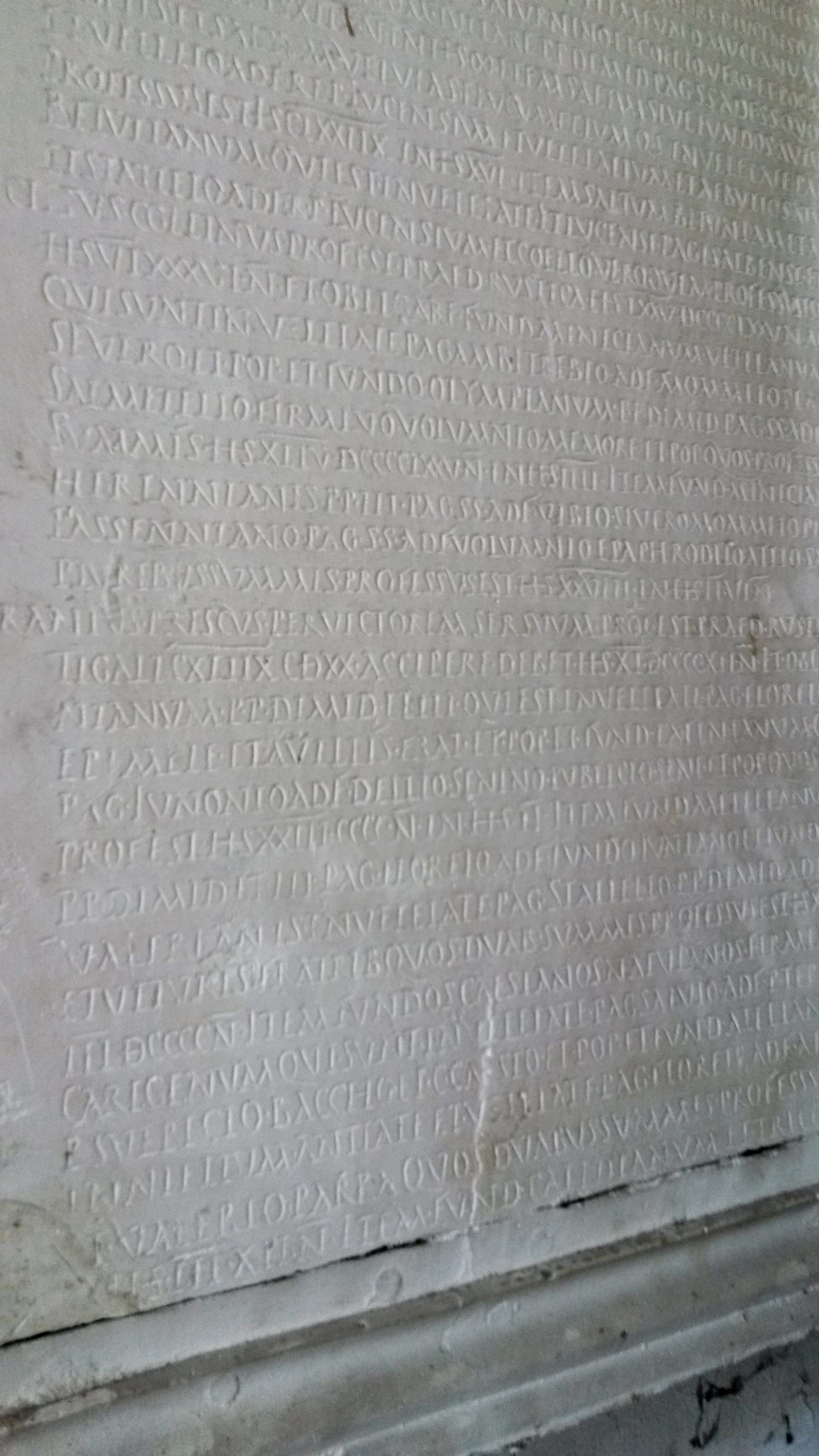 Il calco della Tabula alimentaria, sette pannelli in gesso che riproducono l’antica tavola in bronzo, con ogni probabilità veniva utilizzato dal Muratori per lo studio e la stesura dell’edizione critica della Tabula alimentaria di Traiano, scoperta nel 1747 nella cittadina di Veleia, sulle montagne del piacentino, e oggetto di analisi di molti eruditi del tempo. La fortunata scoperta, infatti, aveva fatto conoscere all’intero mondo antiquario l’esistenza del piccolo municipio romano di Veleia e di lì a qualche anno avrebbe portato alla fondazione, nella capitale del ducato, di uno dei primi musei archeologici aperti al pubblico, il Museo di Antichità di Parma, ufficialmente inaugurato nel 1760. Della Tabula originale in lamina bronzea, conservata al tempo dai canonici piacentini Giovanni Roncovieri e Antonio Costa, furono approntate copie e trascrizioni, tra cui le due prime edizioni di Ludovico Antonio Muratori a Modena, corredata da facsimili e calchi, e Scipione Maffei a Verona, uscite gli anni immediatamente successivi al ritrovamento.