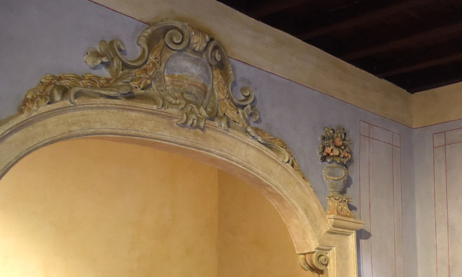 Per il restauro delle mura, prima dell’intervento sono state eseguite analisi preliminari con prelievi di adeguate campionature per una completa definizione dei materiali degli strati superficiali d’intonaco, che non hanno evidenziato la presenza di decori pittorici o affreschi. L’intervento è stato limitato agli ambienti che maggiormente necessitano di un restauro, in particolare nel Museo, e consiste nel descialbo delle superfici intonacate fino ad arrivare allo strato antico, facendo attenzione a non asportare le cromie originali, nella pulizia a secco e nella velatura da applicare a pennello. I lavori interessano anche il restauro dei davanzali in cotto, con la pulizia della superficie, la chiusura di eventuali fessure e il trattamento protettivo. Nella zona della Deputazione l’intervento è stato invece limitato al ripristino derivante dall’inserimento degli impianti e ai conseguenti ritocchi pittorici.